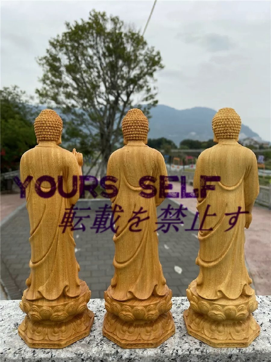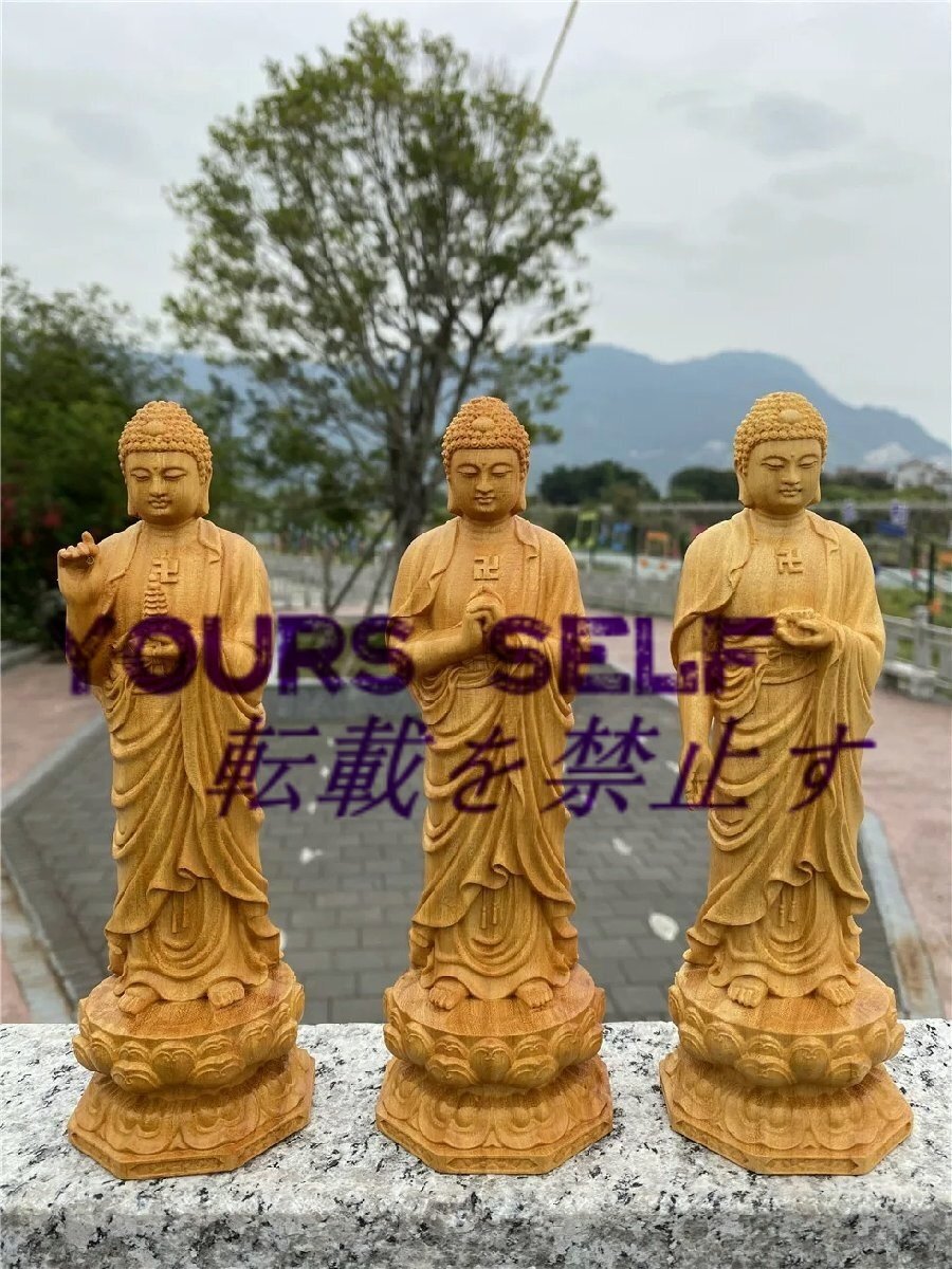 3点セット 薬師如来 釈迦如来 阿弥陀如来 彫刻工芸品 精密彫刻 置物 災難除去 仏教美術 木彫仏像
