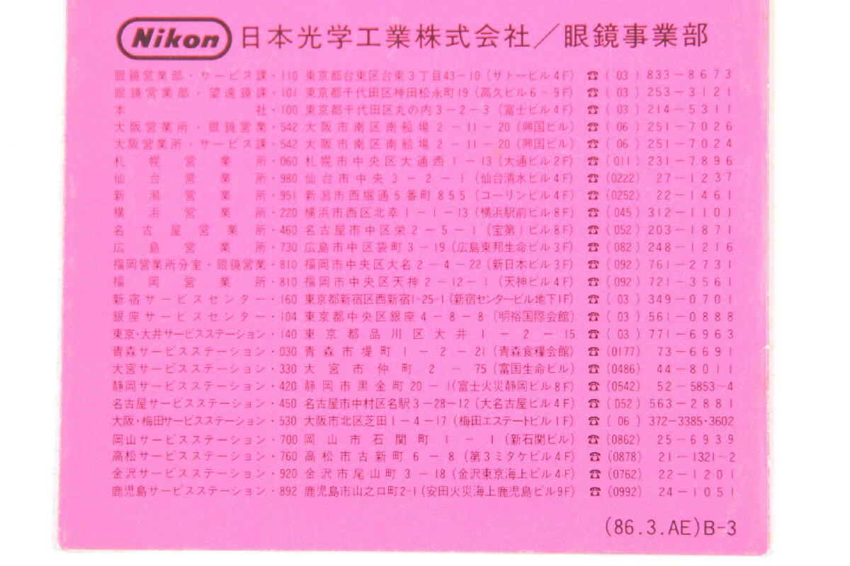 | 商 品 名 | Nikon ニコン 説明書 双眼鏡 6x15CF 「遊」 |