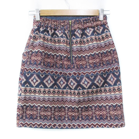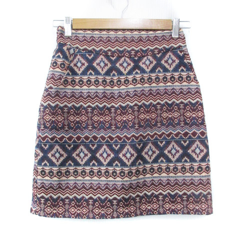 ワンアフター アナザー ナイスクラップ one after another NICE CLAUP 台形スカート ミニ丈 マルチボーダー柄 総柄 紺 赤 レディース
