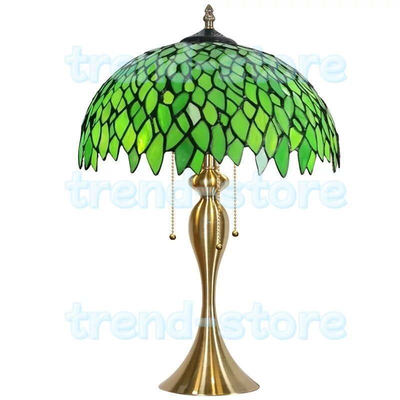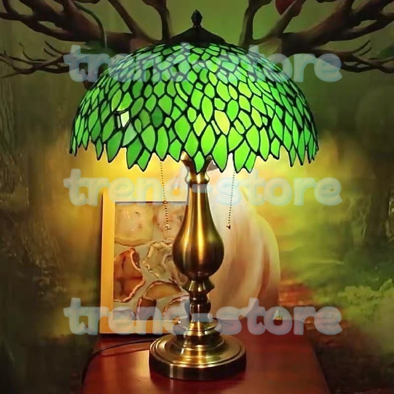 豪華◆芸術品 大型ステンドランプ ステンドグラス グリーンパイル レトロな雰囲気がおしゃれ ティファニー 照明 高さ67cm■EF25