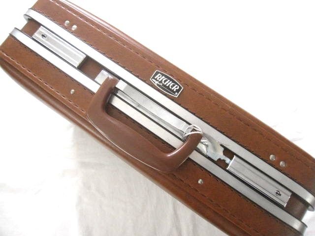 ビンテージRICHERリシェ トランクケース/スーツケース/アタッシュケース茶(50×38×13.5cm)。ユーズドです、保管時の汚れなどございます、神経質な方は控えてください。商品は国内外から魅力のあるものをご紹介できるよう買い付けたものです。コピーやフェイクはございません。新品、中古、新古(新品で購入後、着用が長期間ないもの≒デッドストック)がございます。中古や新古に関しましては神経質な方、古着購入に慣れていらっしゃらない方はトラブル回避のためひかえてください。ユーズド、ヴィンテージの靴(スニーカー)に関しましては目に見えぬ素材のダメージがある場合がございます。お客様ご判断のもとよろしくおねがいします