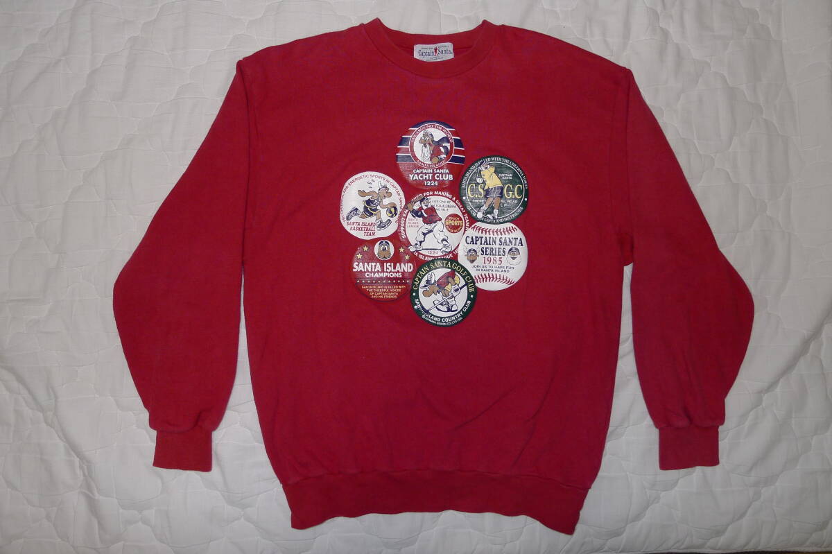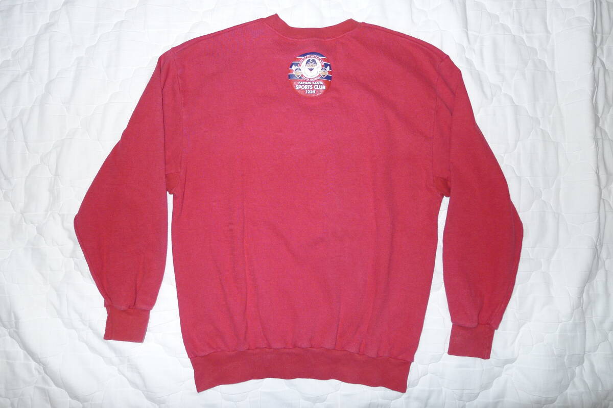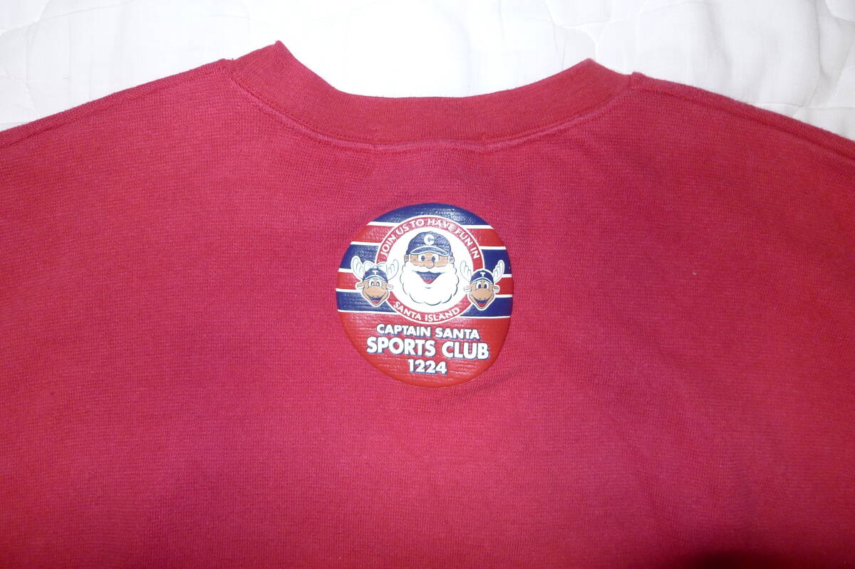 胸および首後部に 「キャプテン・サンタ CAPTAIN SANTA & トニー TONY & ティニー TINY & リッキー RICKY & オッティー OTTIE & ポッキー POKEY のフルキャラクターが スポーツ SPORTS をする姿のワッペン柄」 が厚手プリントされています!
