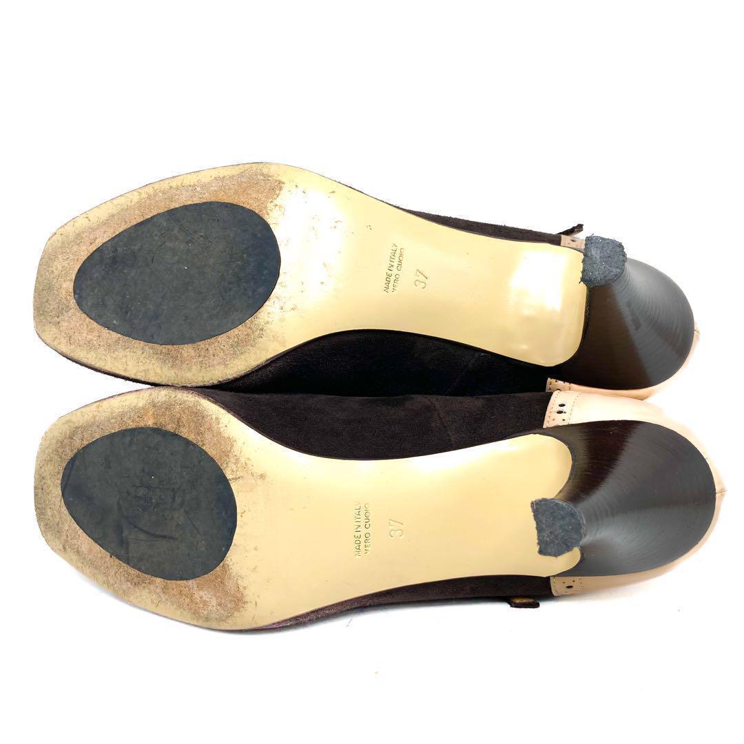 ☆即決・送料無料☆PELLICO ペリーコ スクエアトゥ メダリオン スウェードレザーハイヒール 茶 ブラウン 24cm 革靴 本革 本皮 レディース