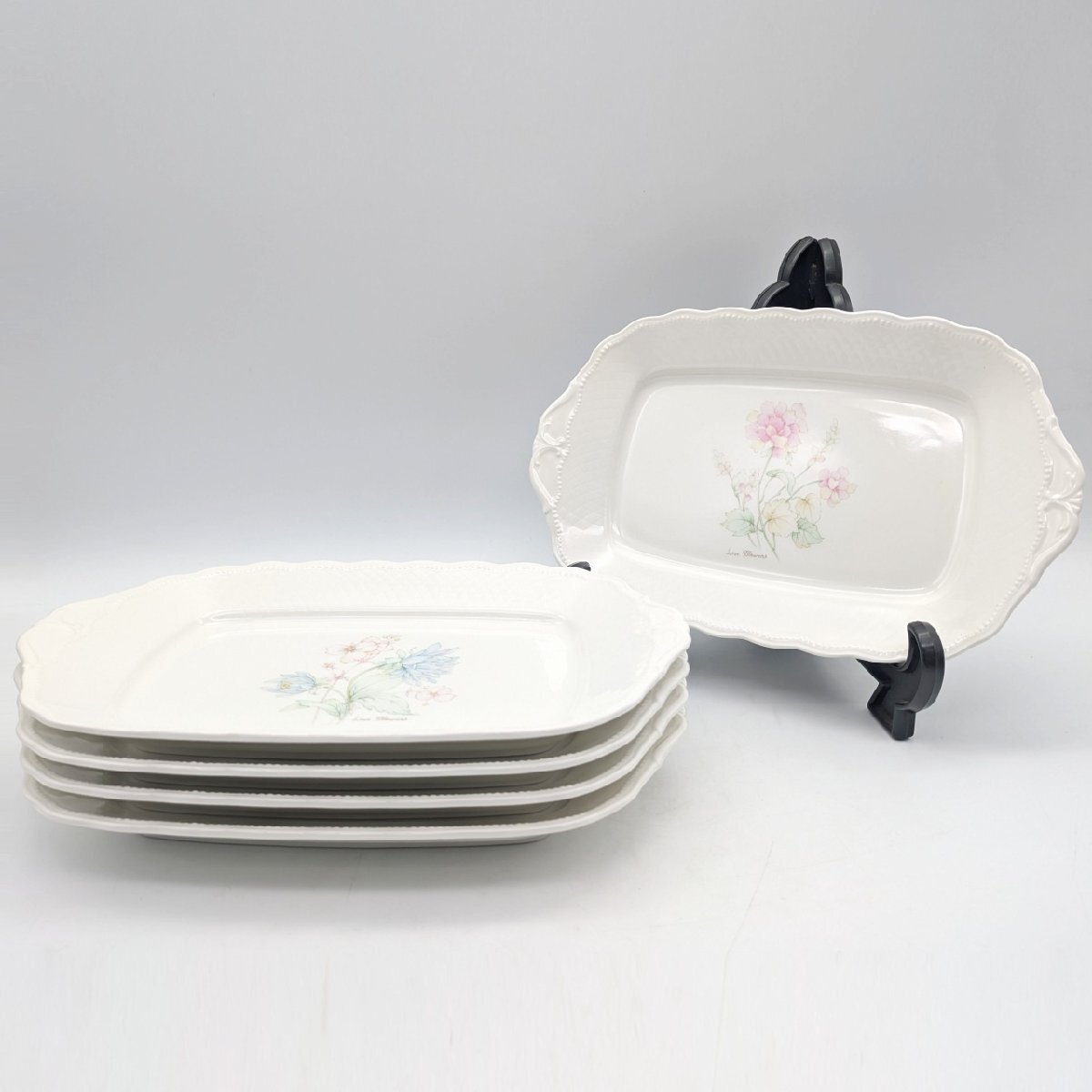 食器サイズ(幅×奥行×高さ):約260×165×30㎜、枚数:5枚、状態ランク:D 商品は画像に写っているものが全てです。5枚のうち3枚に貫入(表面ひび割れ)が見受けられます。その他状態は画像をご確認ください。