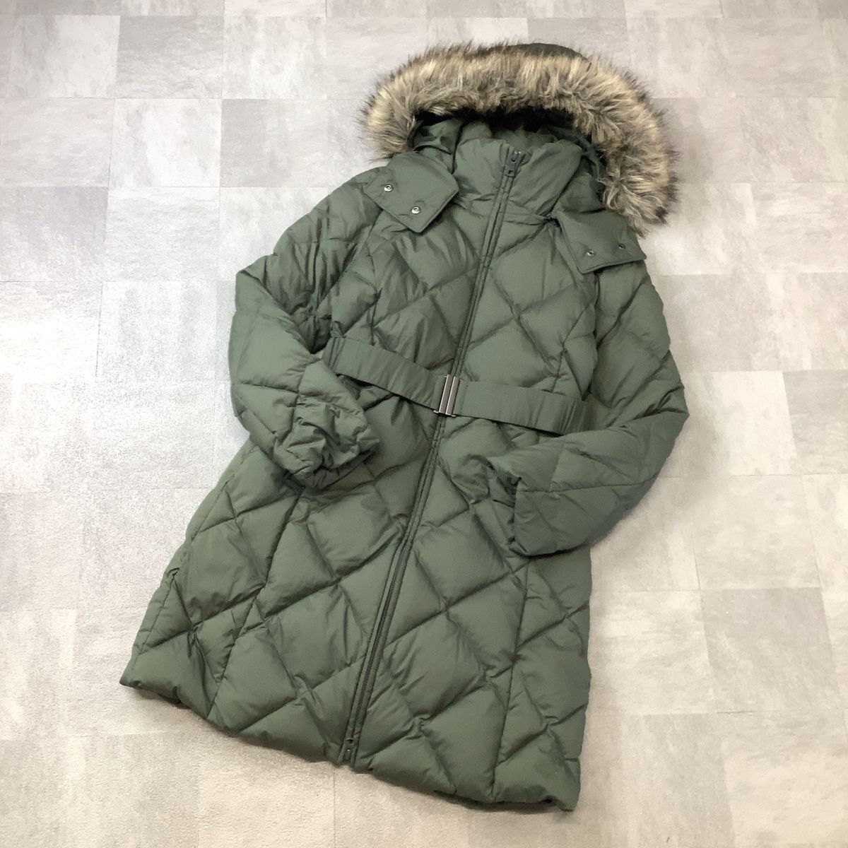 良品 ユニクロ UNIQLO キルティング ファー ダウンコート レディース Mサイズ カーキ