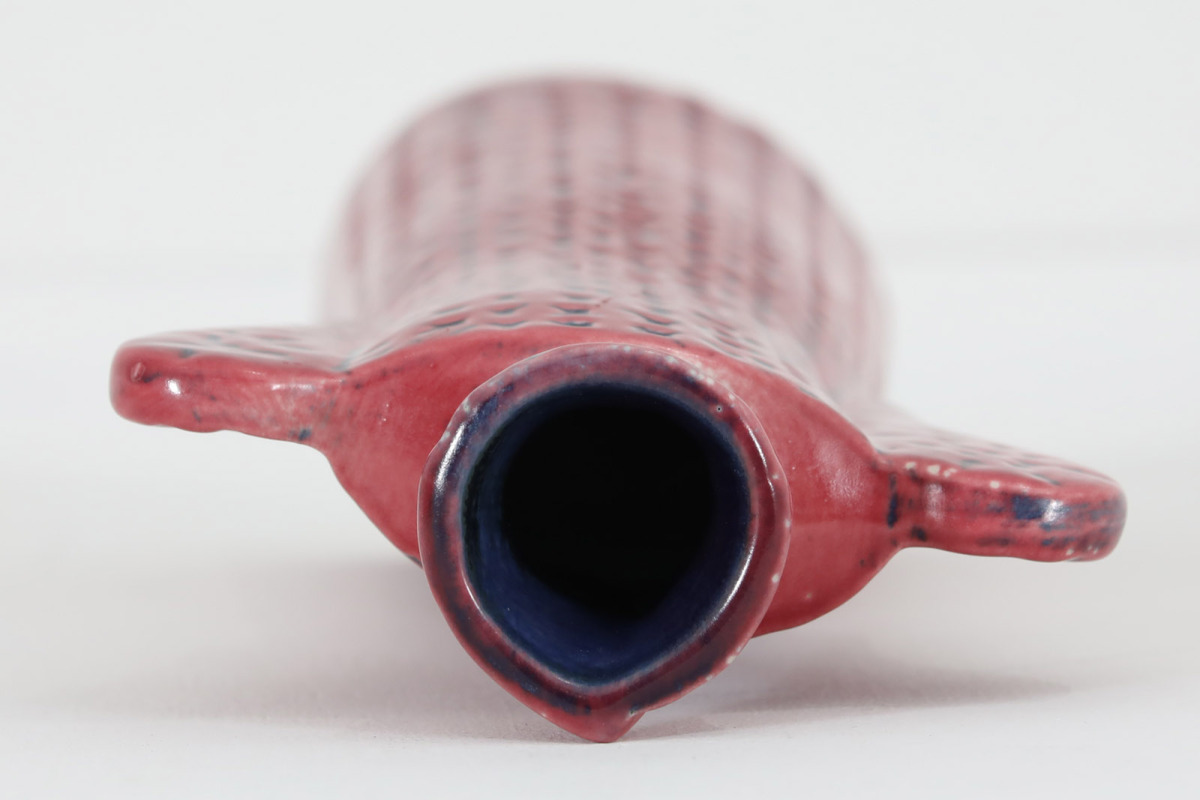 コンディション | ベース口付近と肩のあたりに白い部分が見受けられますがこちらは欠けではなく釉薬のムラによるものかと思います。表面にはプツプツと凹凸などがございますがヒビやカケなどはなく、コンディションは良好です。 |