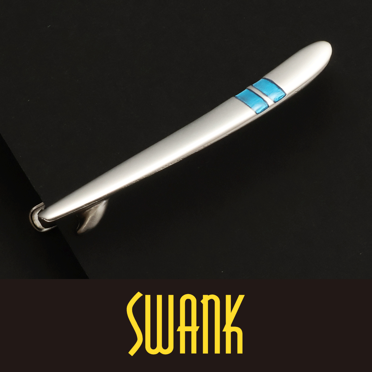 SWANK スワンク ネクタイピン 1897年アメリカはニューヨークで創業、装身具の老舗ブランドです。 様々なモチーフを可愛くデフォルメし遊び心を主張しています。 伊勢丹や高島屋で取扱中のブランドです。 波乗りをしているような立体的にサーフボードを表現しています。 カラー:シルバー×ブルー サイズ:5.5㎝ 付属品:スワンク純正ボックスケース |