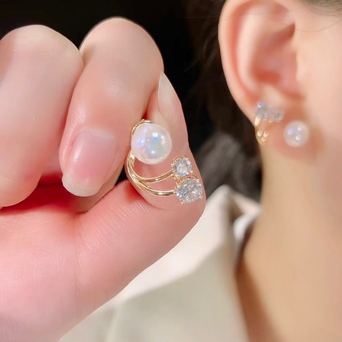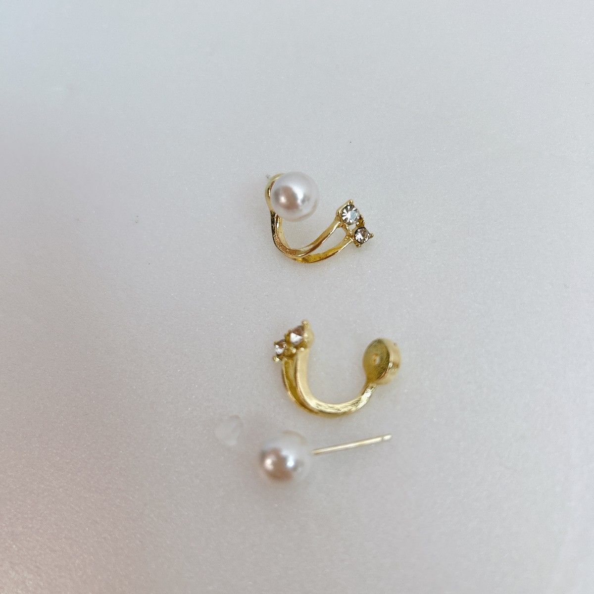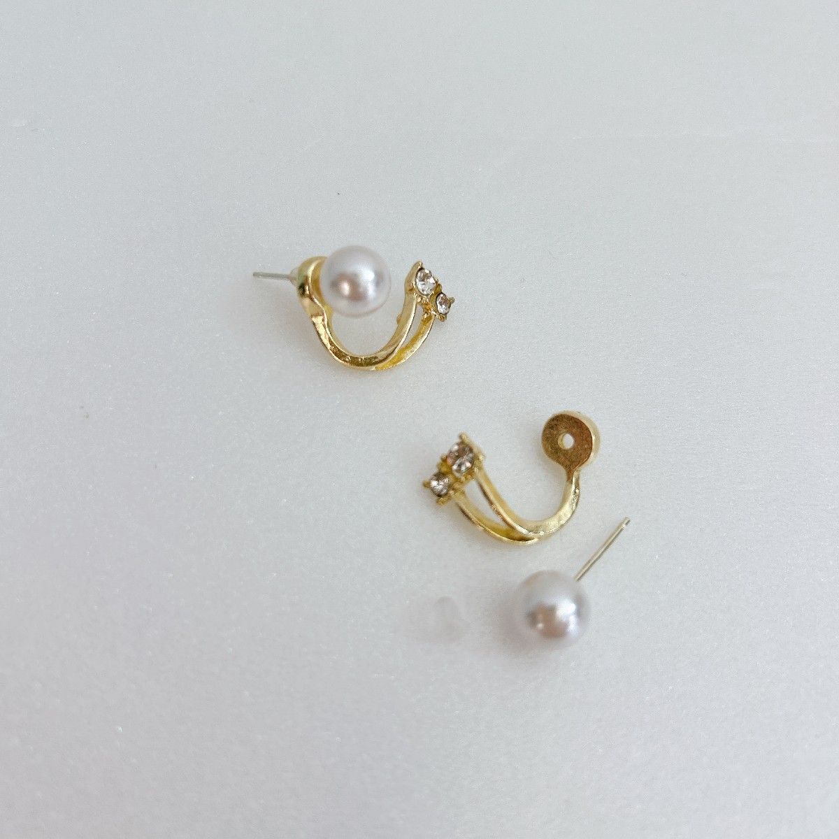 パールとビジューの輝きが上品な2wayピアスです。