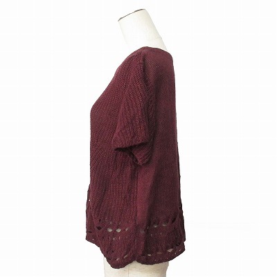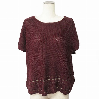 C'EST CHIC'A BLEU セシカ ニット 透かし編み 半袖 シルク混 ボルドー レディース
