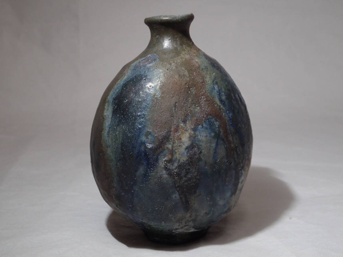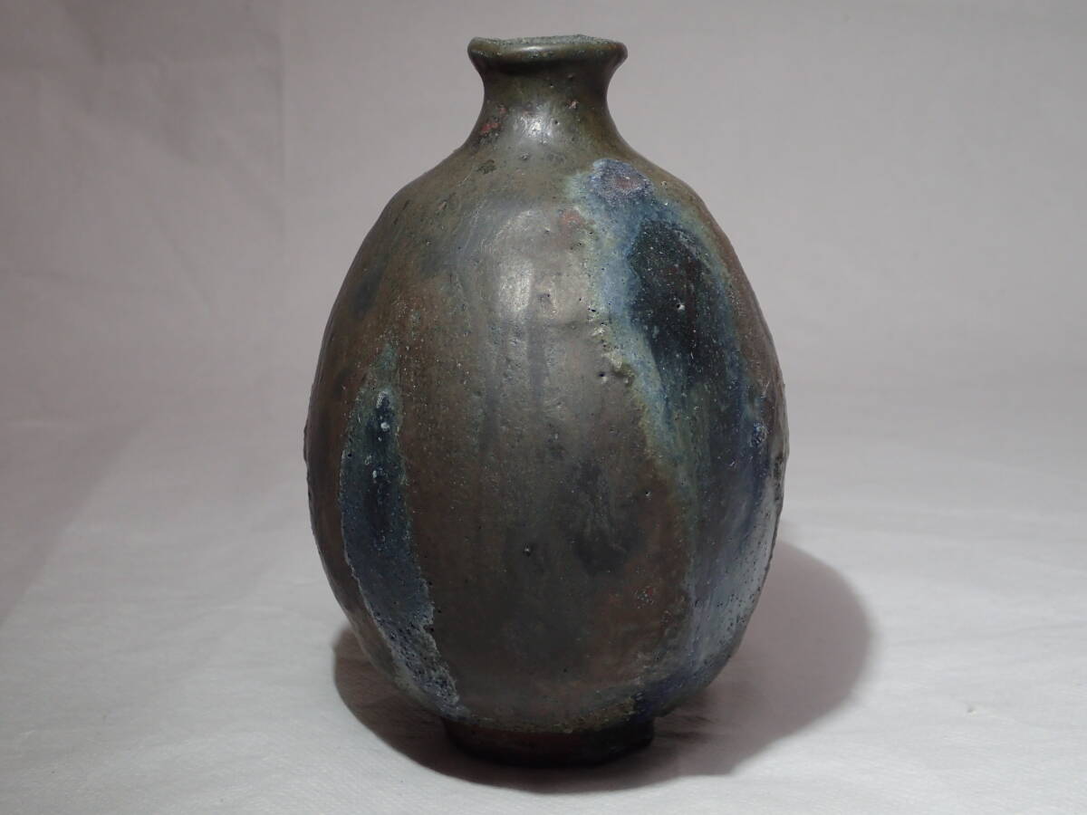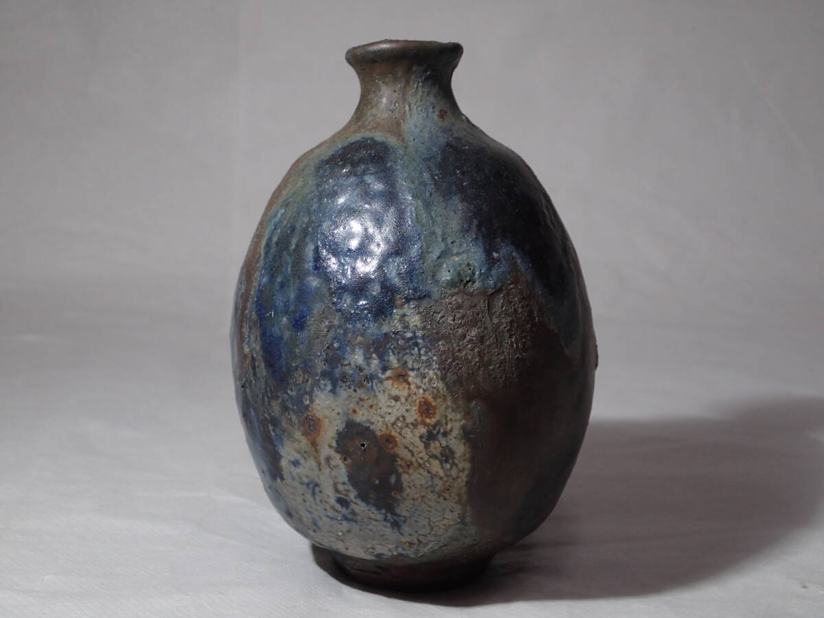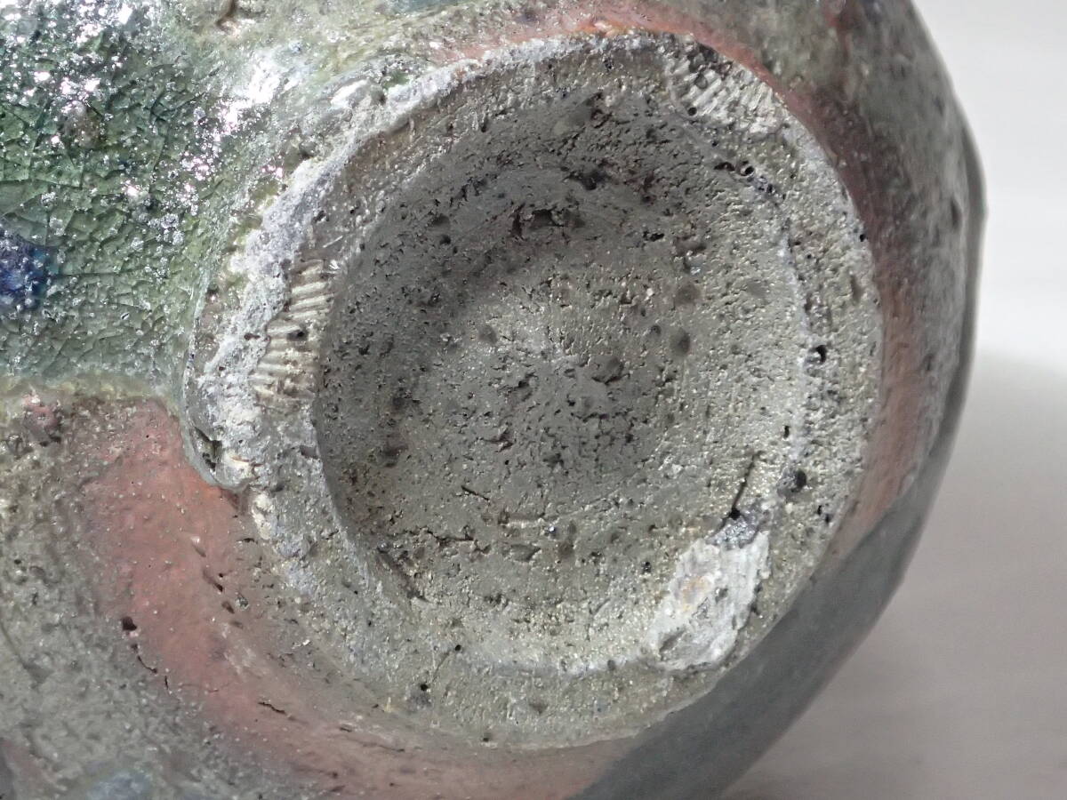 ・池田作品の中では珍しい黒織部扁壺、稀少な作品です。 ・極限まで燃焼させて現れた数々の窯変、見飽きない扁壺です。 サイズ 胴径12cmx10cmx高さ15cm