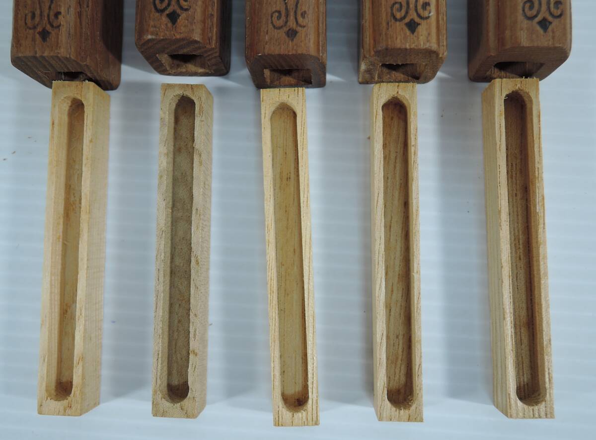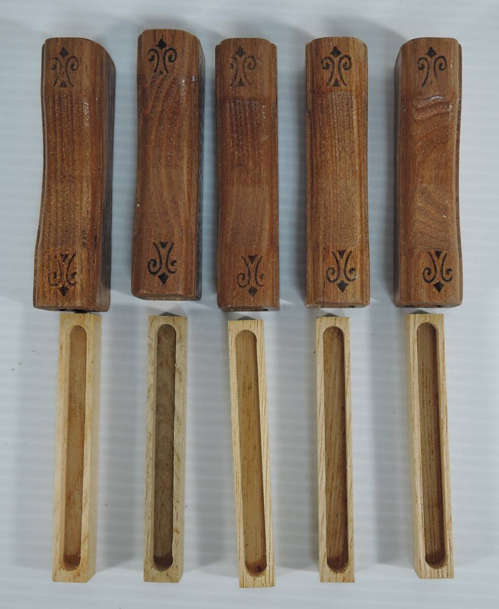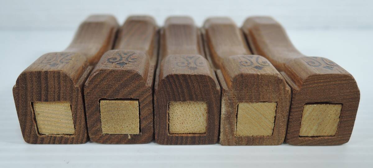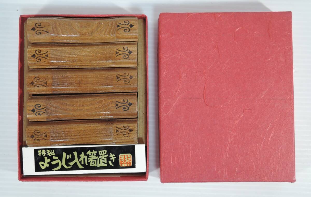 ☆B05 昭和レトロ■北粋作 箸置き(爪楊枝入れ付) ようじ入れ箸置き 木製(槐・えんじゅ) 5個セット■未使用