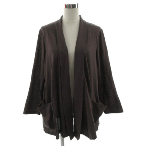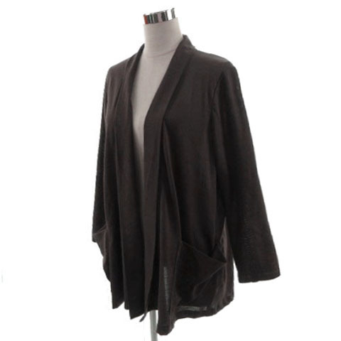 レリアン Leilian カーディガン 羽織り 長袖 日本製 リネン混 ブラウン系 茶系 15+ 大きいサイズ レディース