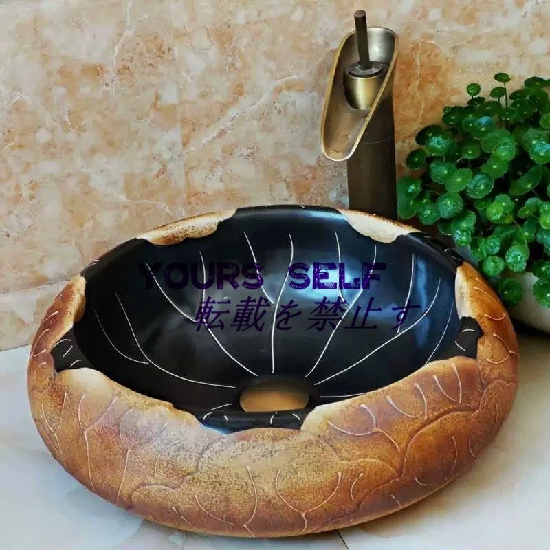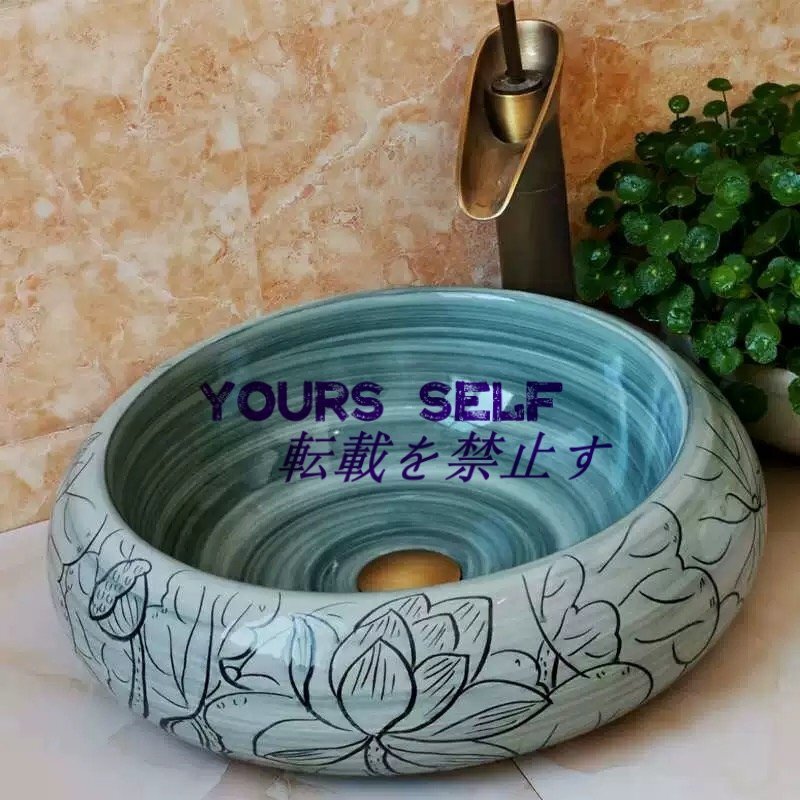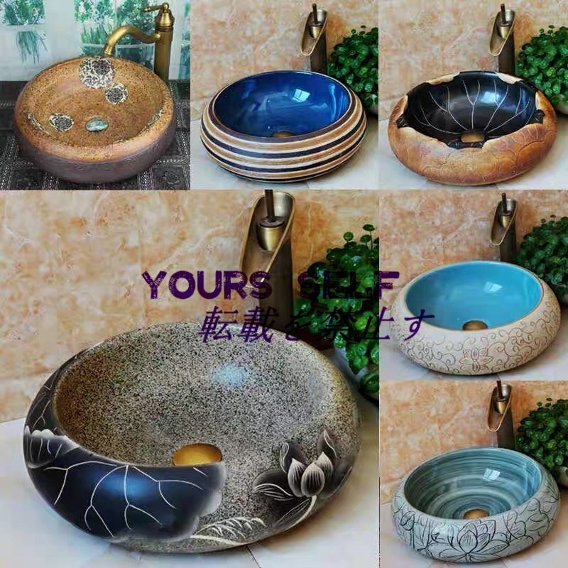 極美品★ 高級洗面台 洗面ボウルセット 洗面ボール 陶器 手水鉢 .手洗器 手洗い鉢 洗面器 蛇口 排水金具付き A-E