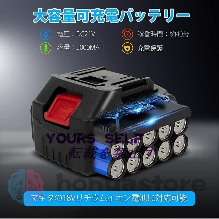 大容量の高出力高耐久モーターユニット搭載しており、電圧21Vでコードレスでもハイパワーが長時間