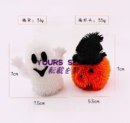 【ピカピカ光る】ハロウィンのゴーストとパンプキンおもちゃは高さ7センチで、お子様にぴったりです。交換不可能な電池が付いており、カボチャ幽霊のおもちゃに軽く衝突すると約10秒のカラーライトが点灯します。赤と青の光があり、夜間の使用に最適です。