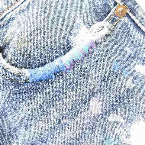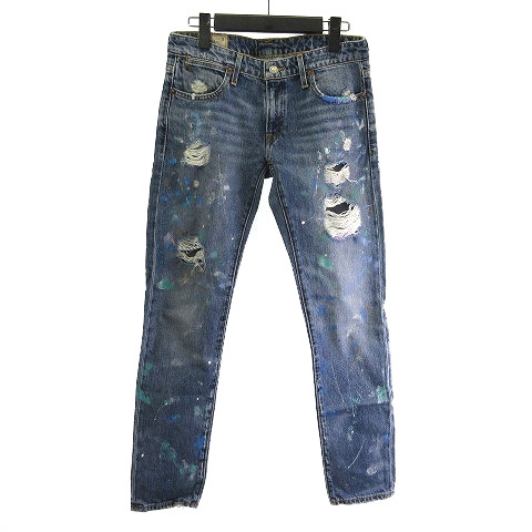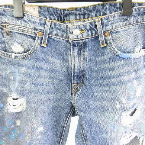 ポロ ラルフローレン POLO RALPH LAUREN スキニーデニムパンツ ペイント ダメージ ブルー 25 レディース