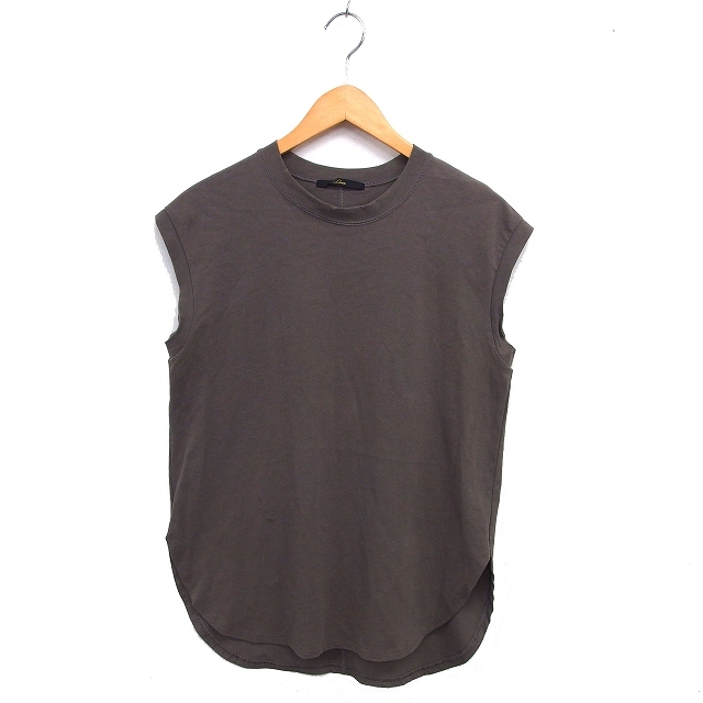 リエス Liesse チュニック カットソー バックロング ラウンドヘム フレンチスリーブ クルーネック ノースリーブ カーキ /NT35 レディース