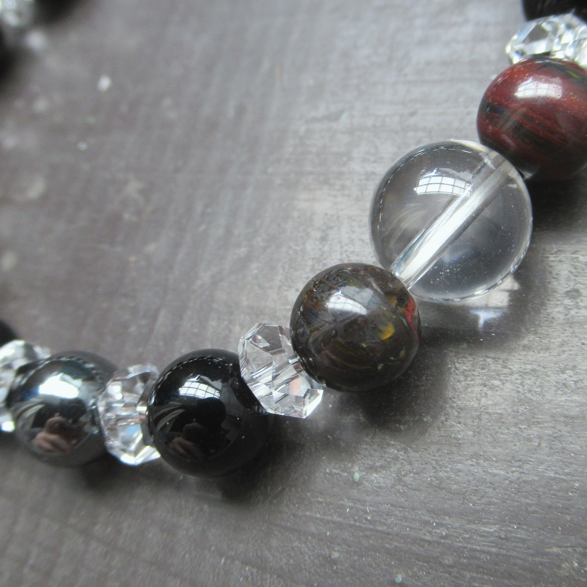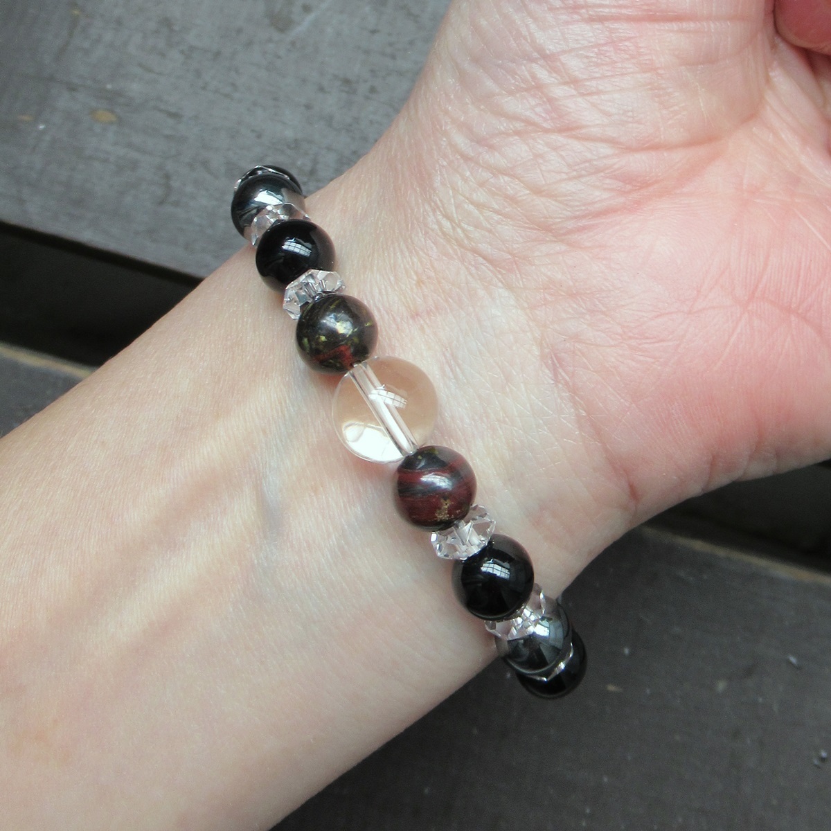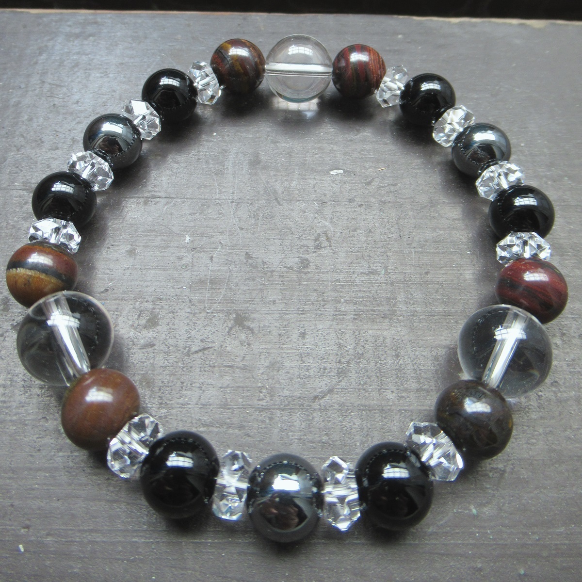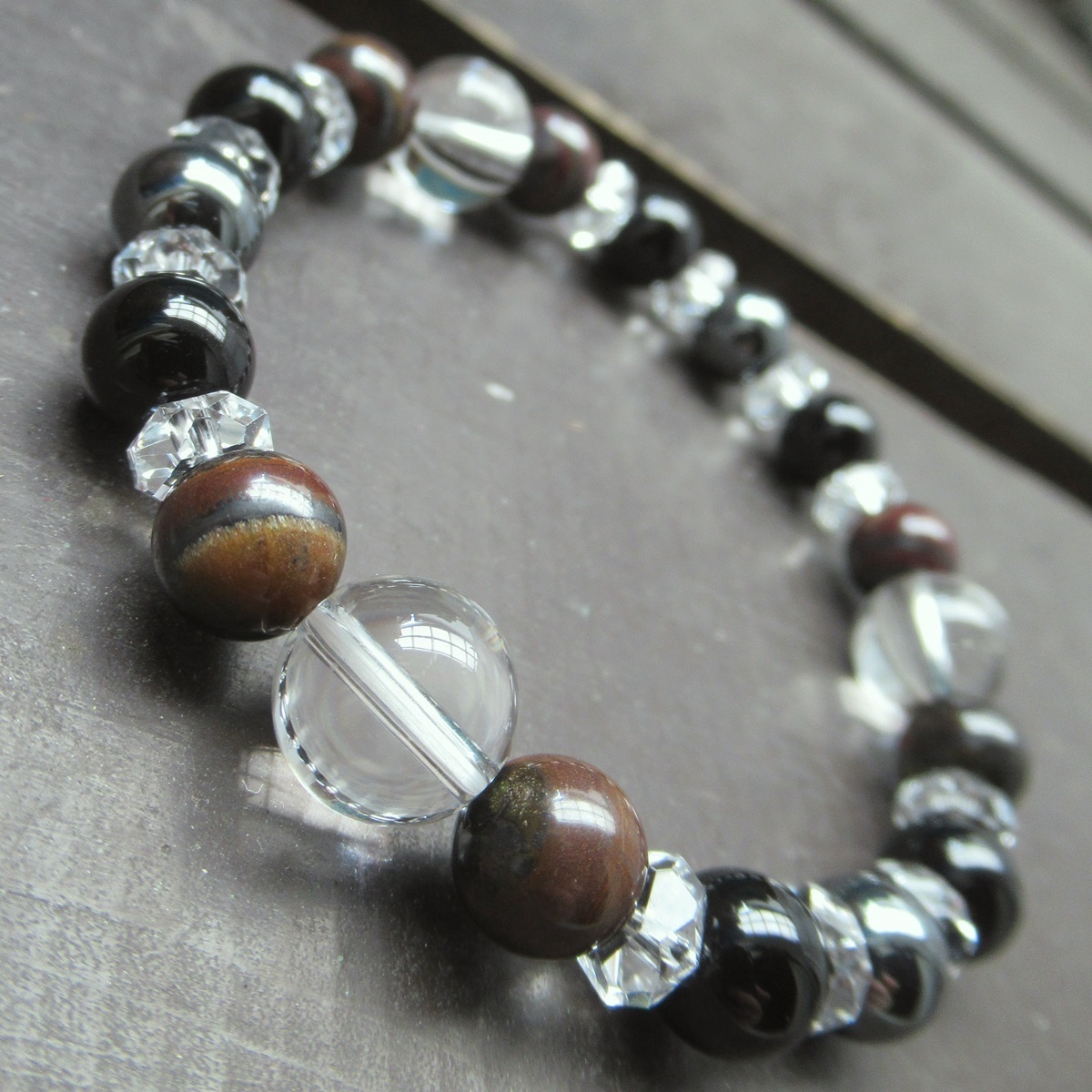水晶xアイアンタイガーアイxオニキスブレスレット 天然石 パワーストーン