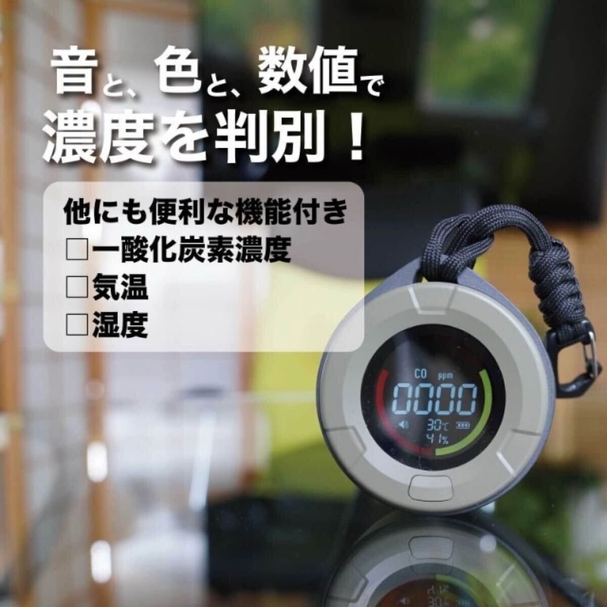 【視覚的にも感覚的にも分かりやすい】色&数値&アラームで一酸化炭素濃度をお知らせします。濃度によって色で識別でき、文字も大きくみやすい設計。換気のタイミングを自身で設定でき、アラームでお知らせします。