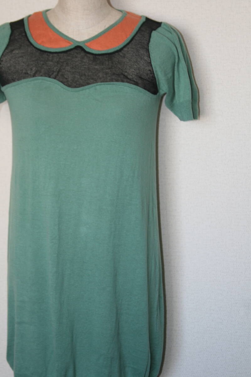 ♪♪♪古着・㈱シャンブル ドゥシャーム・切り替えチュニック・若草色系・F♪♪♪
