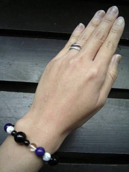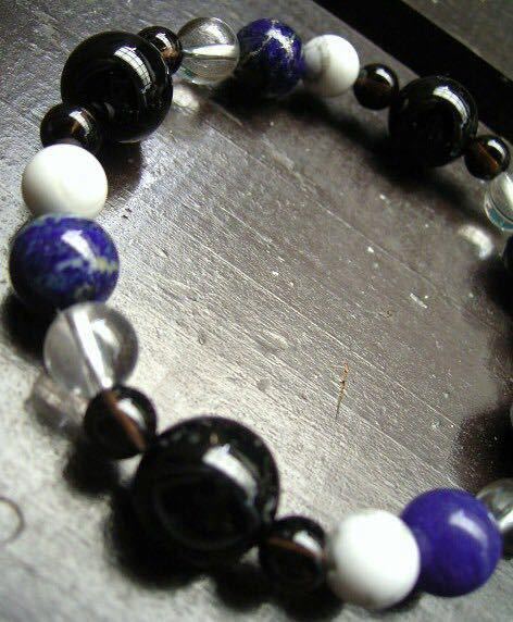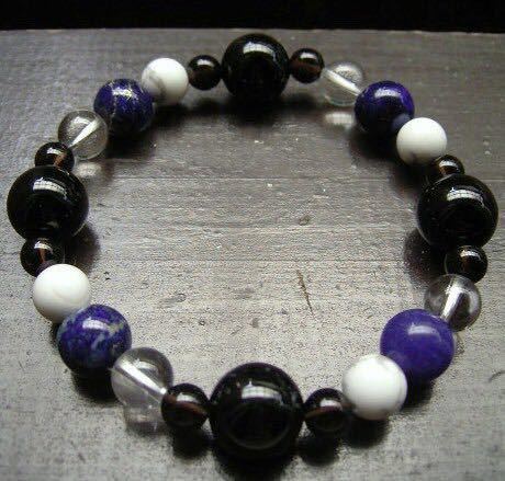 オニキスxラピスラズリxハウライトxスモーキークォーツx水晶ブレスレット 天然石 パワーストーン