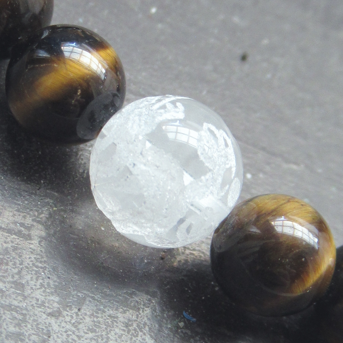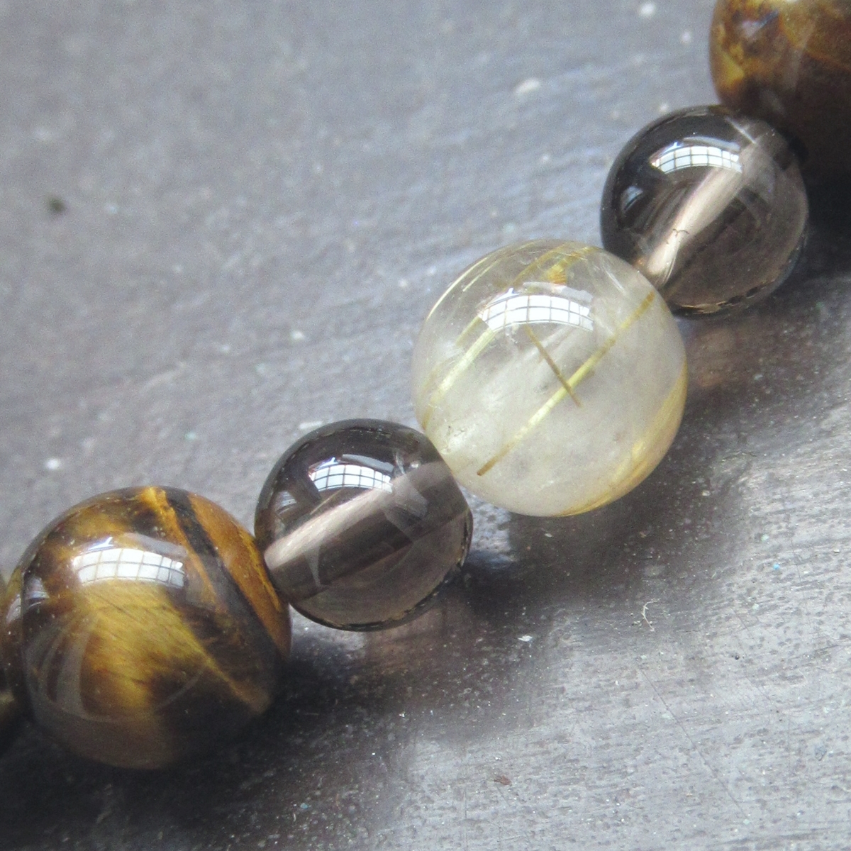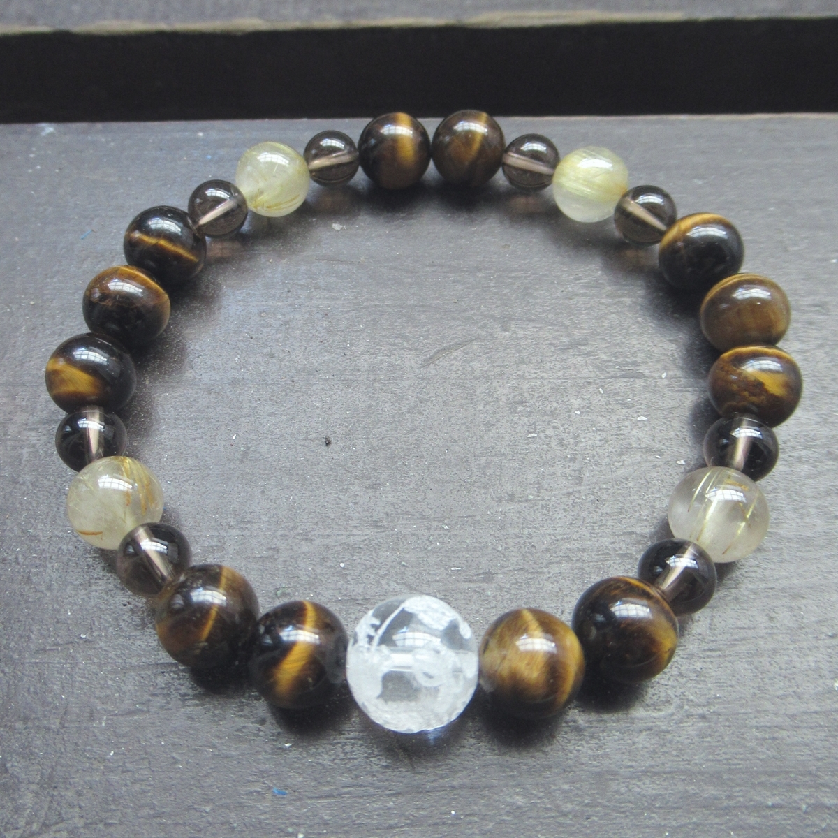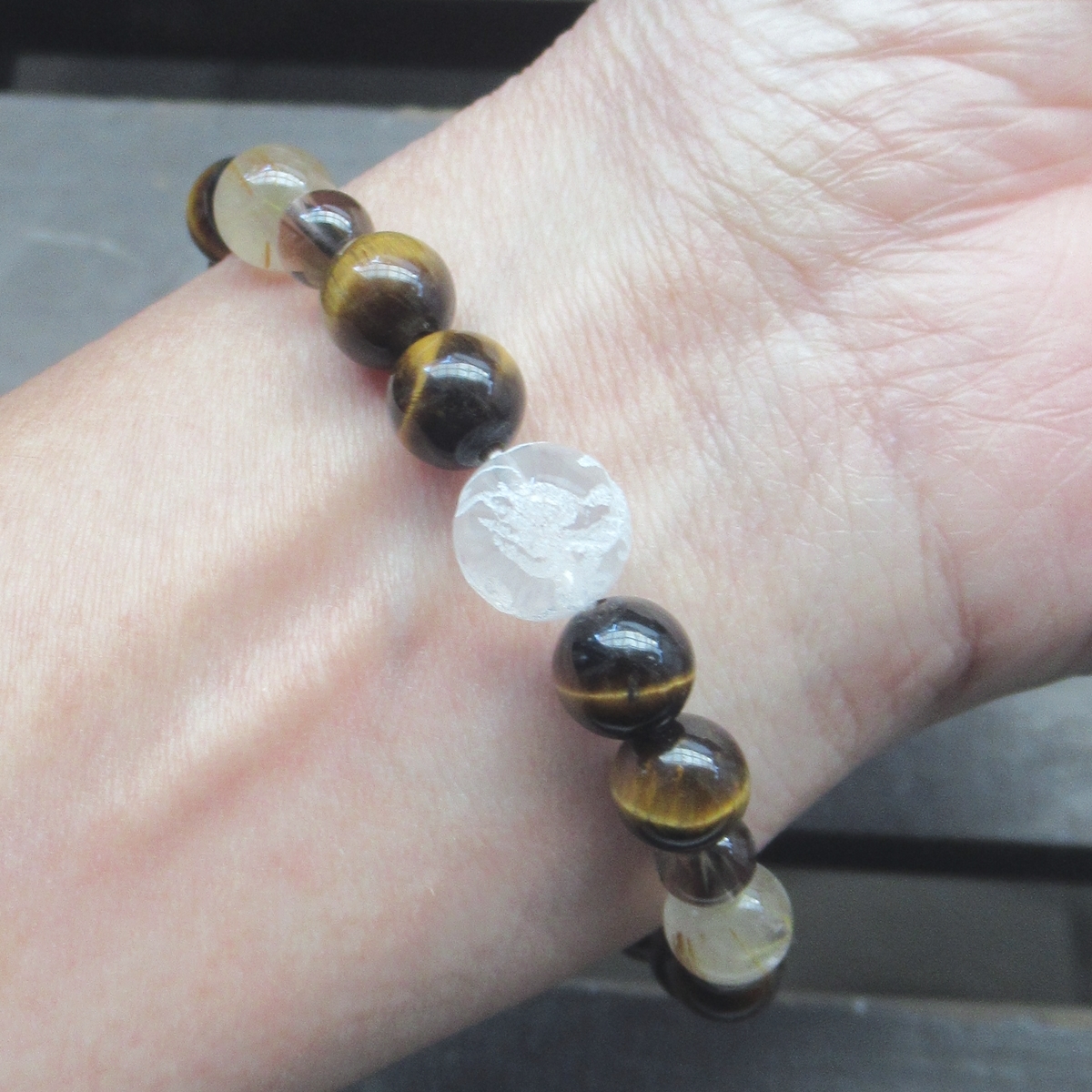 龍彫水晶xタイガーアイxスモーキークォーツxルチルクォーツブレスレット 天然石 パワーストーン