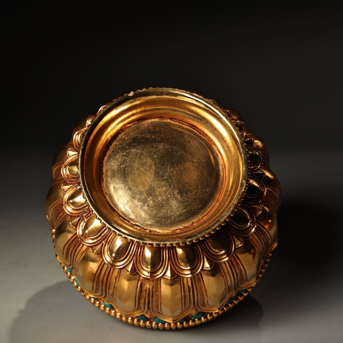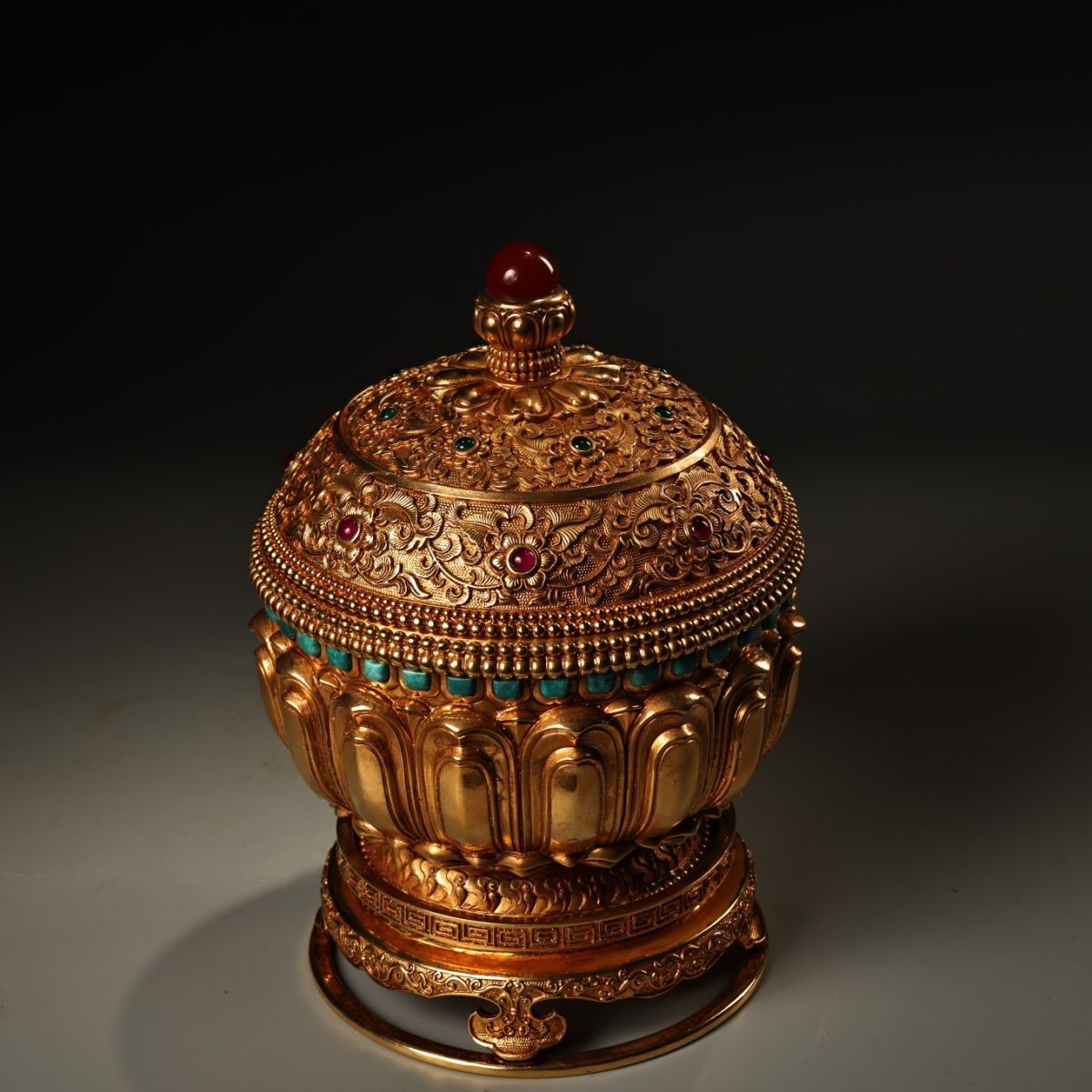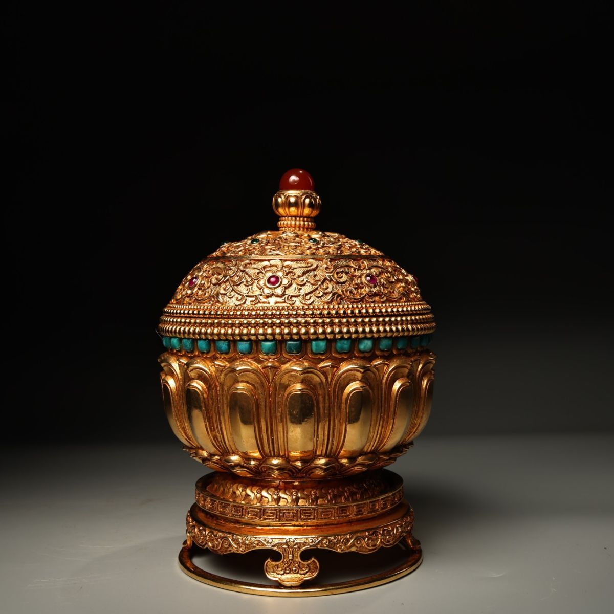 永し 清時代 塗金嵌寶石 緑松石 熏爐 極細工 古銅彫 文房具 置物擺件 古美術品 時代物 古董品 収集 旧家蔵出 中国唐物 A2444