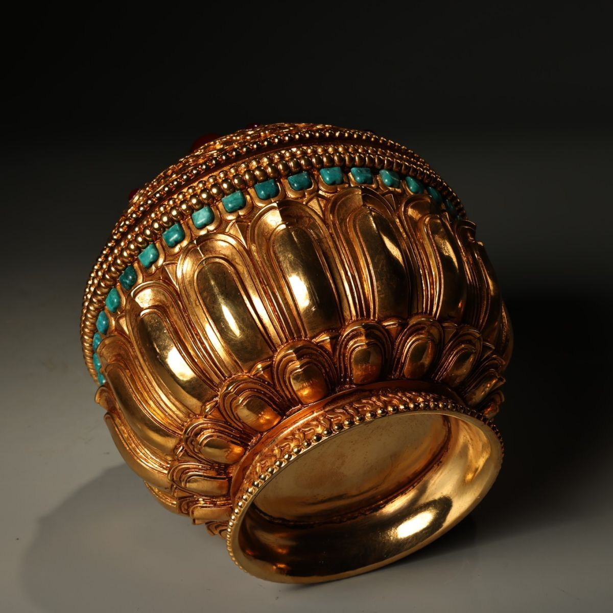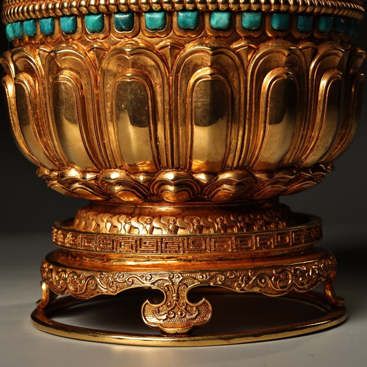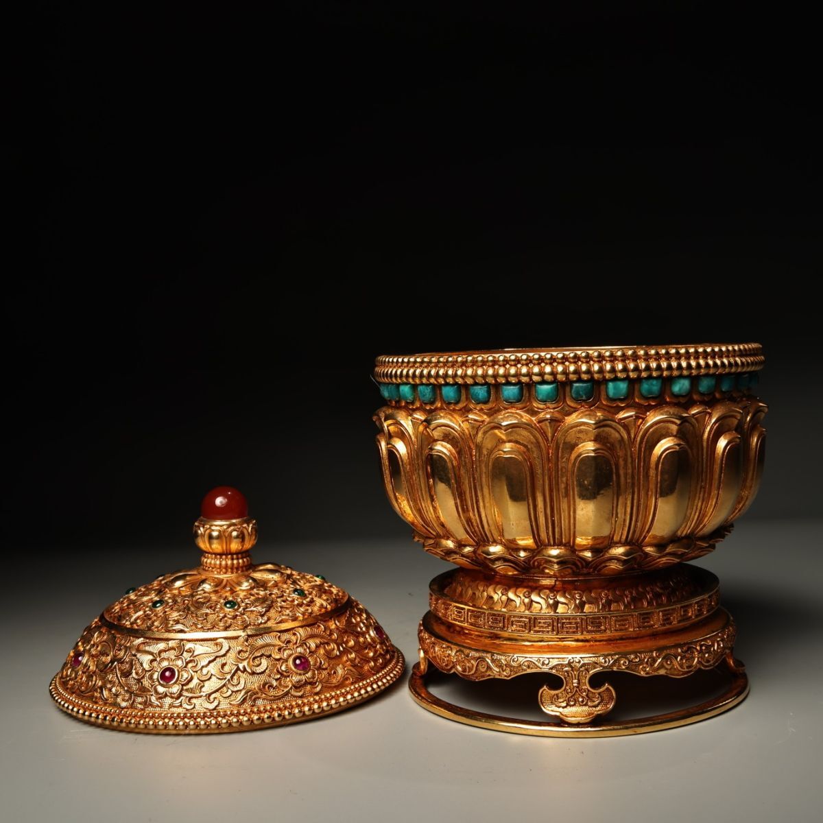 永し 清時代 塗金嵌寶石 緑松石 熏爐 極細工 古銅彫 文房具 置物擺件 古美術品 時代物 古董品 収集 旧家蔵出 中国唐物 A2444