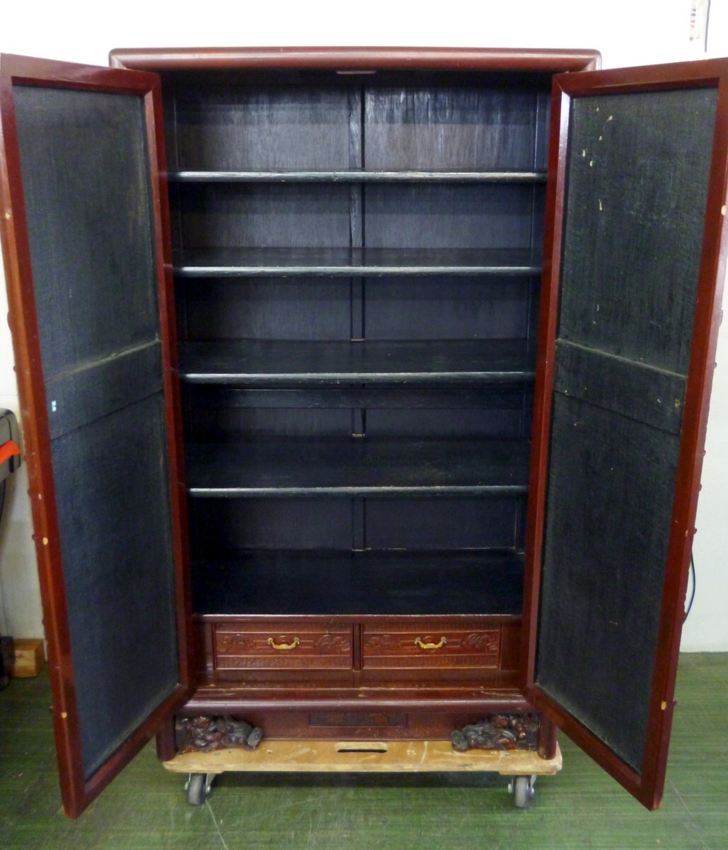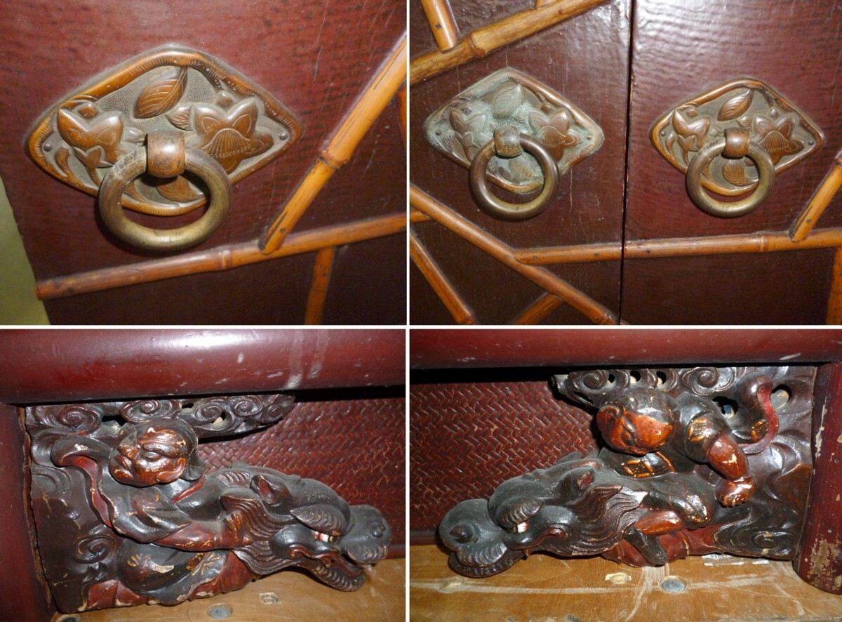 付属品 | 観音扉 / 棚板4段 / 引出2杯 脚に龍の彫刻 (写真参照) | ||||||||||