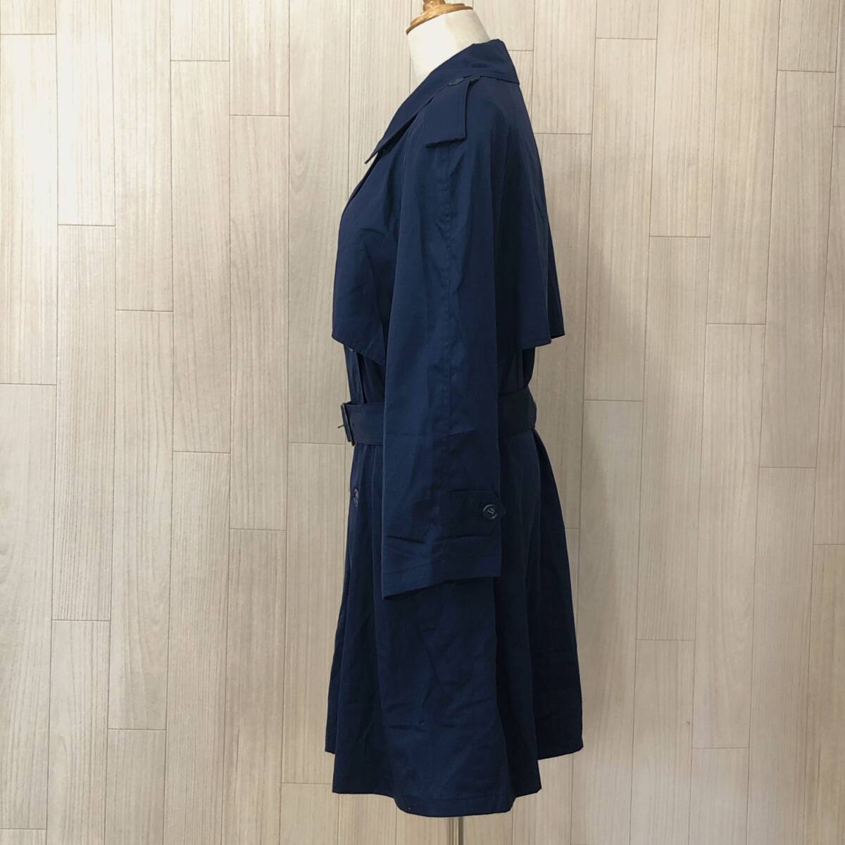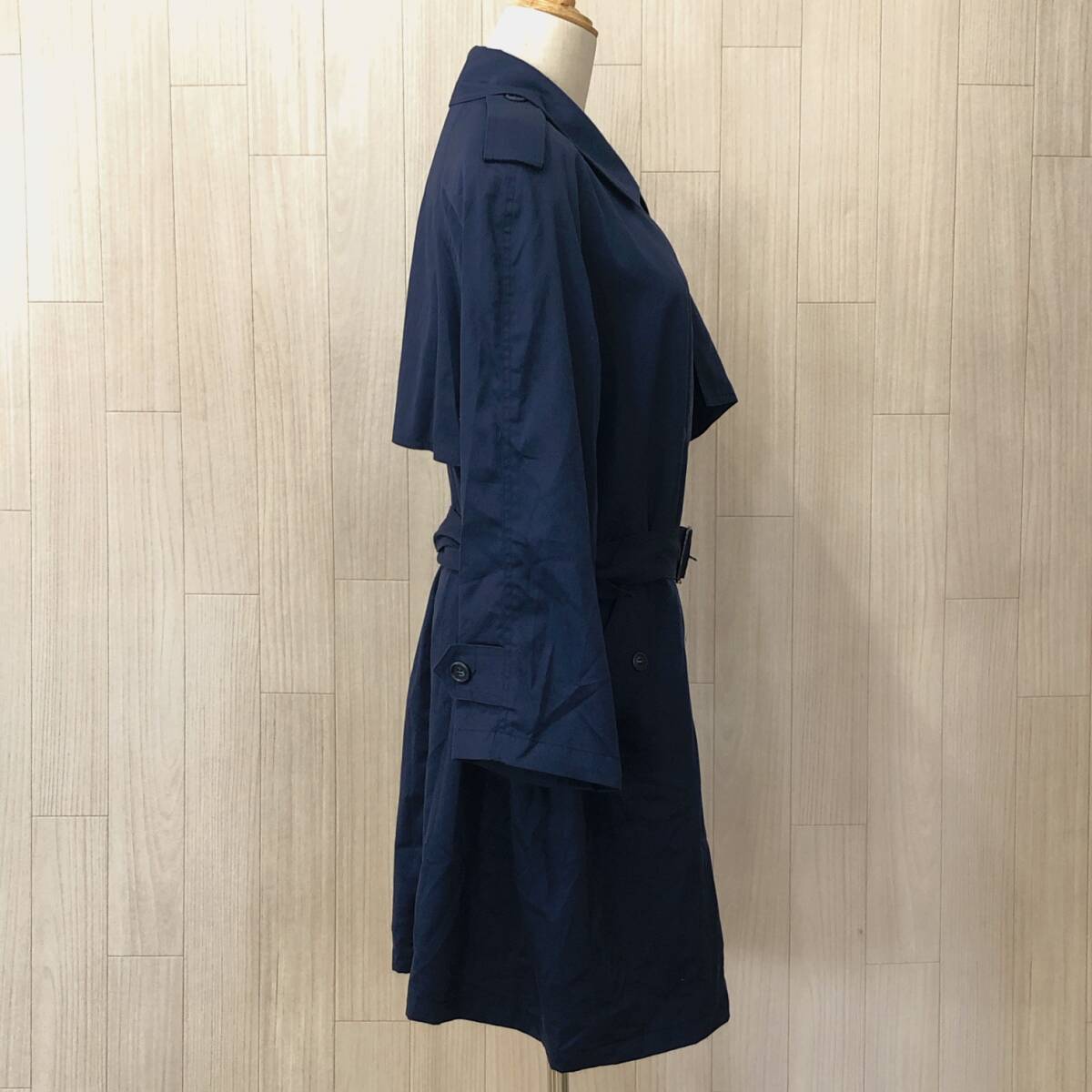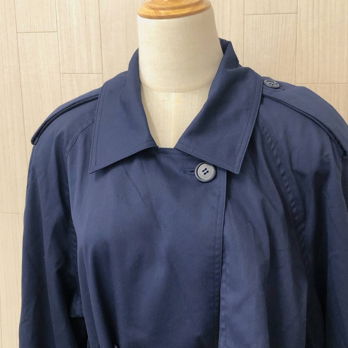 Y1696 美品 Giuba レディース トップス コート 膝下丈 ウエスト紐付き 薄手 肩パッド ネイビー 紺 無地 綿素材含 春秋 オフィススタイル