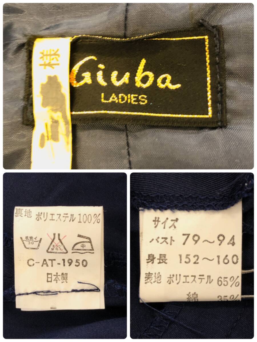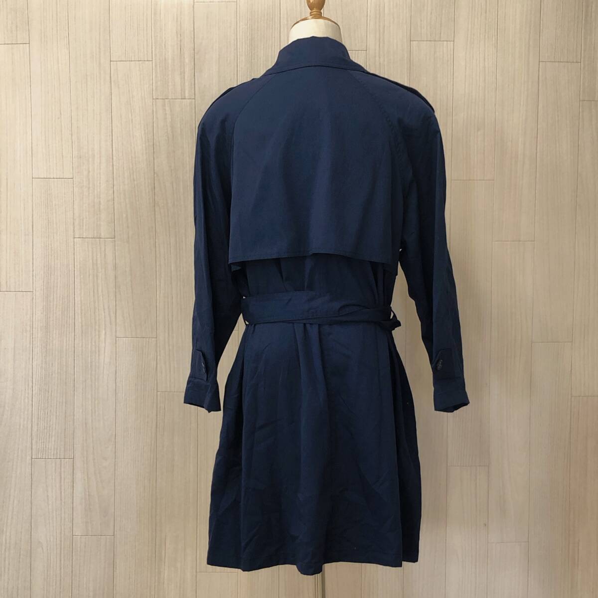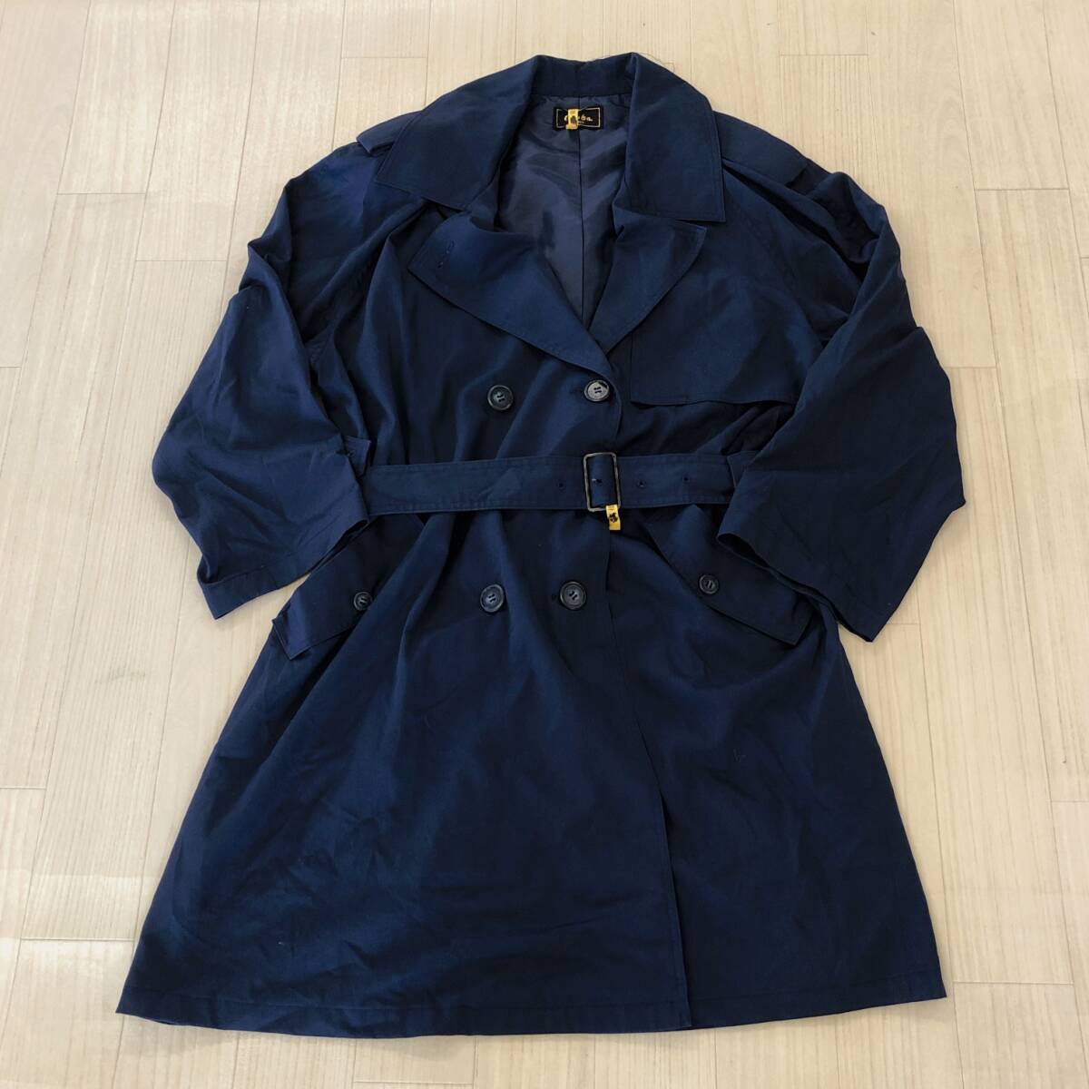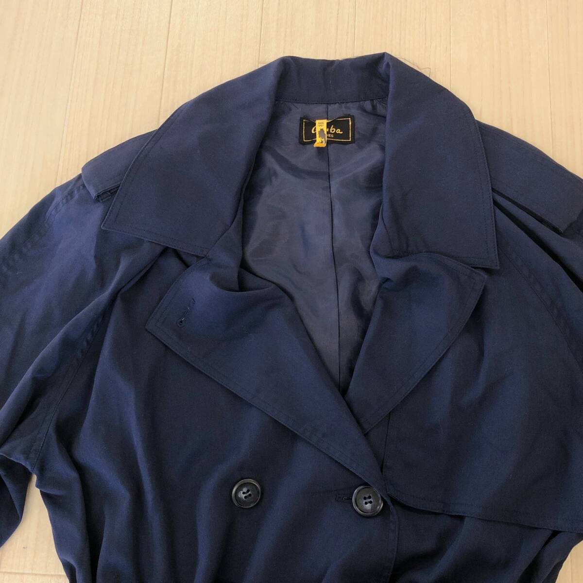 Y1696 美品 Giuba レディース トップス コート 膝下丈 ウエスト紐付き 薄手 肩パッド ネイビー 紺 無地 綿素材含 春秋 オフィススタイル