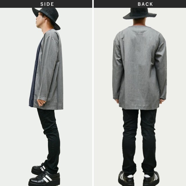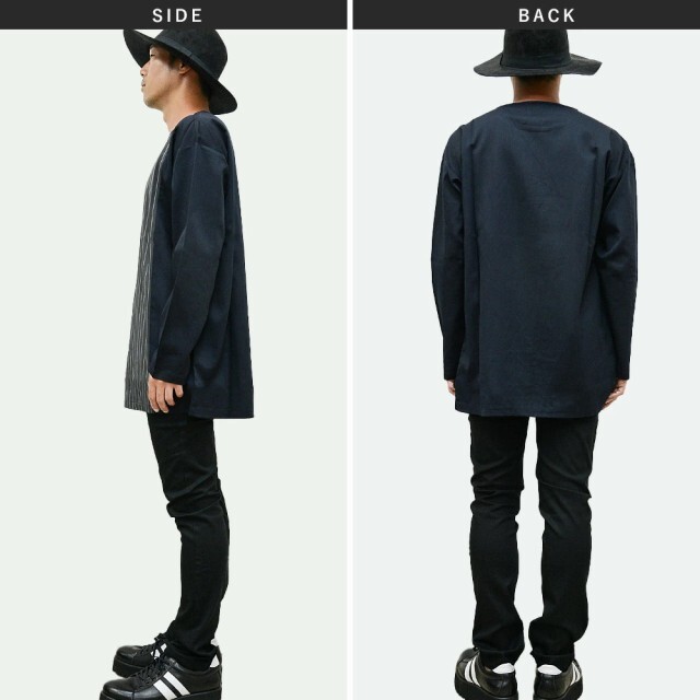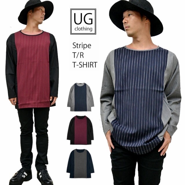 ピンストライプ切替 長袖カットソーrv7525 メンズカットソー 長袖Tシャツ 新品 ネイビーxチャコール M