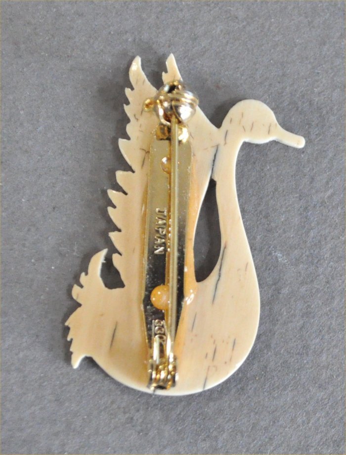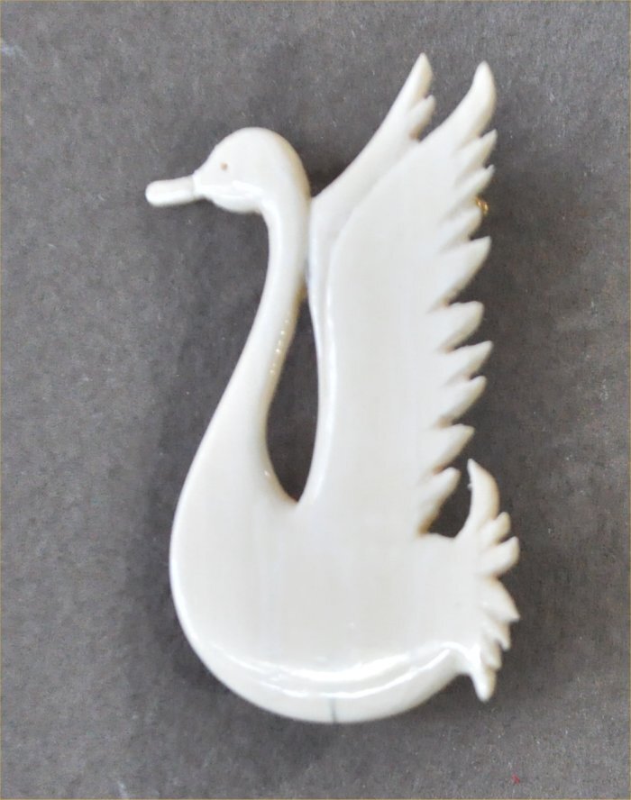 スワンブローチサイズは21mm×41mm厚み2mm磨き仕上げ素材マンモス牙マンモス牙の表皮部分を使ってスワンを彫りました。