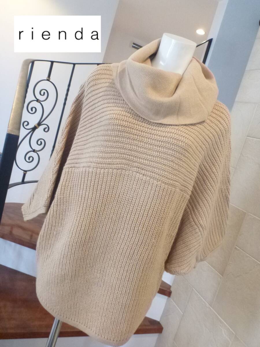 超美品 rienda リエンダ★ベージュ ドルマン袖 チュニック 厚手セーター F M相当
