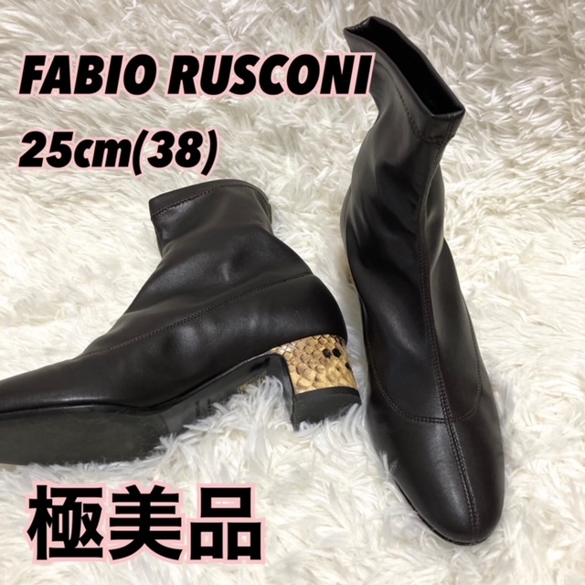 ★即決★送料無料★匿名発送★極美品 FABIO RUSCONI ファビオ ルスコーニ ストレッチショートブーツ 25㎝ 黒