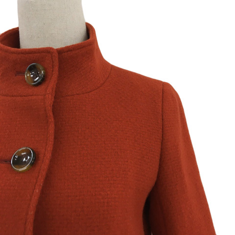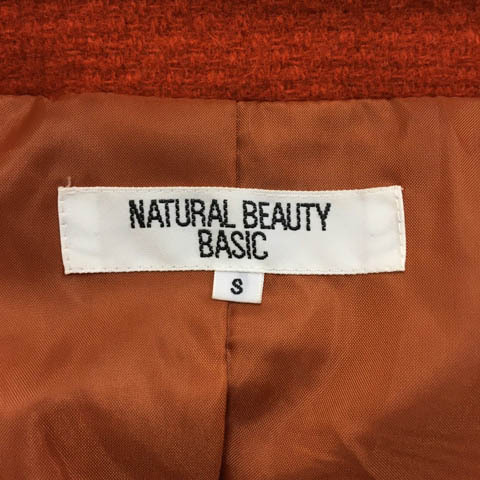 ナチュラルビューティーベーシック NATURAL BEAUTY BASIC コート ハーフ シングル スタンドカラー ウール 無地 S オレンジ レディース