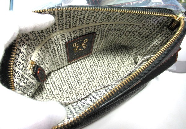 ファスナーポケットの引手には額縁にブラック・ベアが入った取り外し可能なファスナーチャーム付
