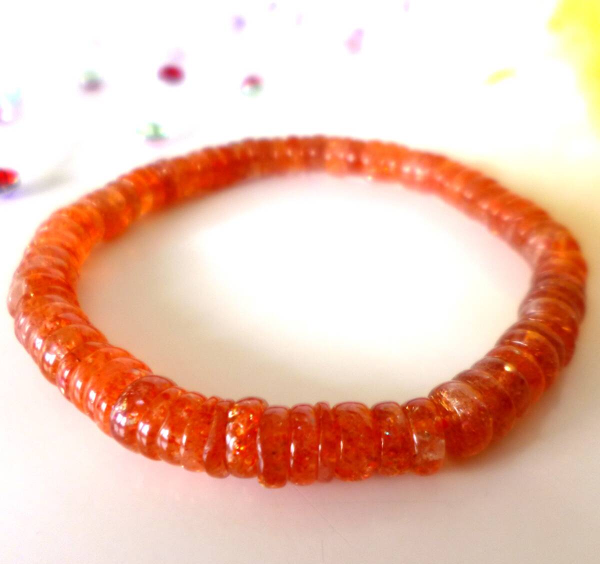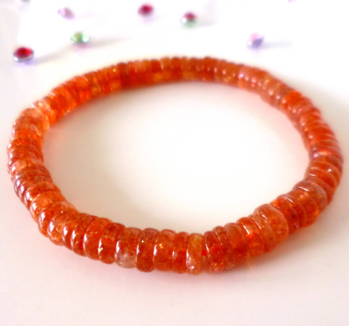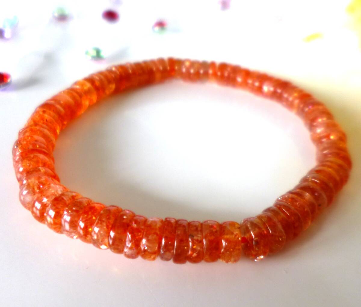 生命力エネルギー☆   ポジティブストーン☆   ☆太陽の石☆   ☆勝利の石☆   ☆南インド産☆   ☆サンストーン☆   ☆6.5×2~3mm☆  ☆16cm☆   ☆6月22日の誕生日石