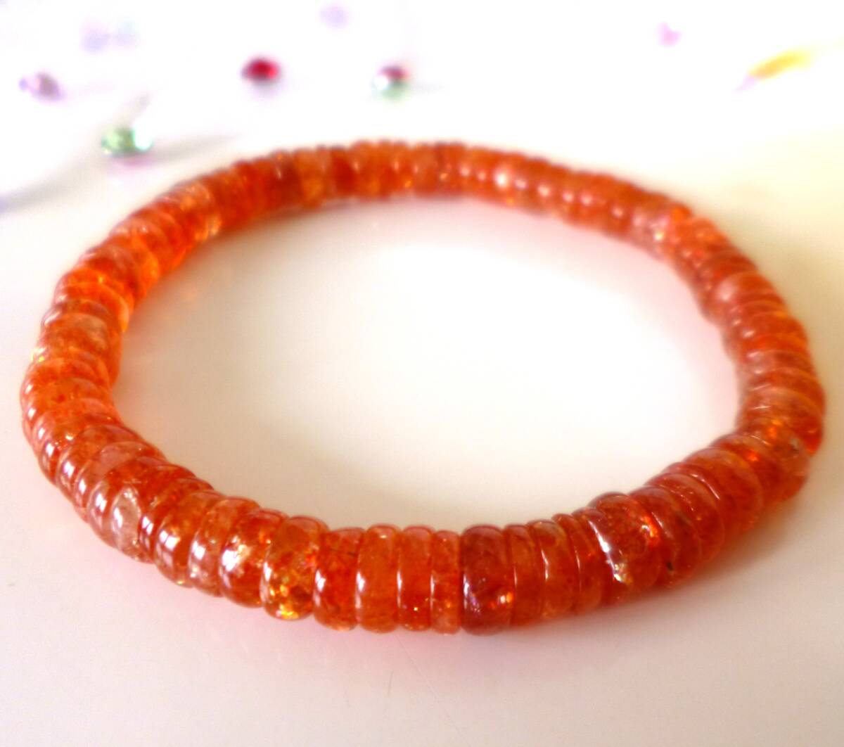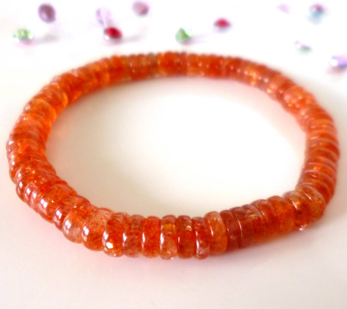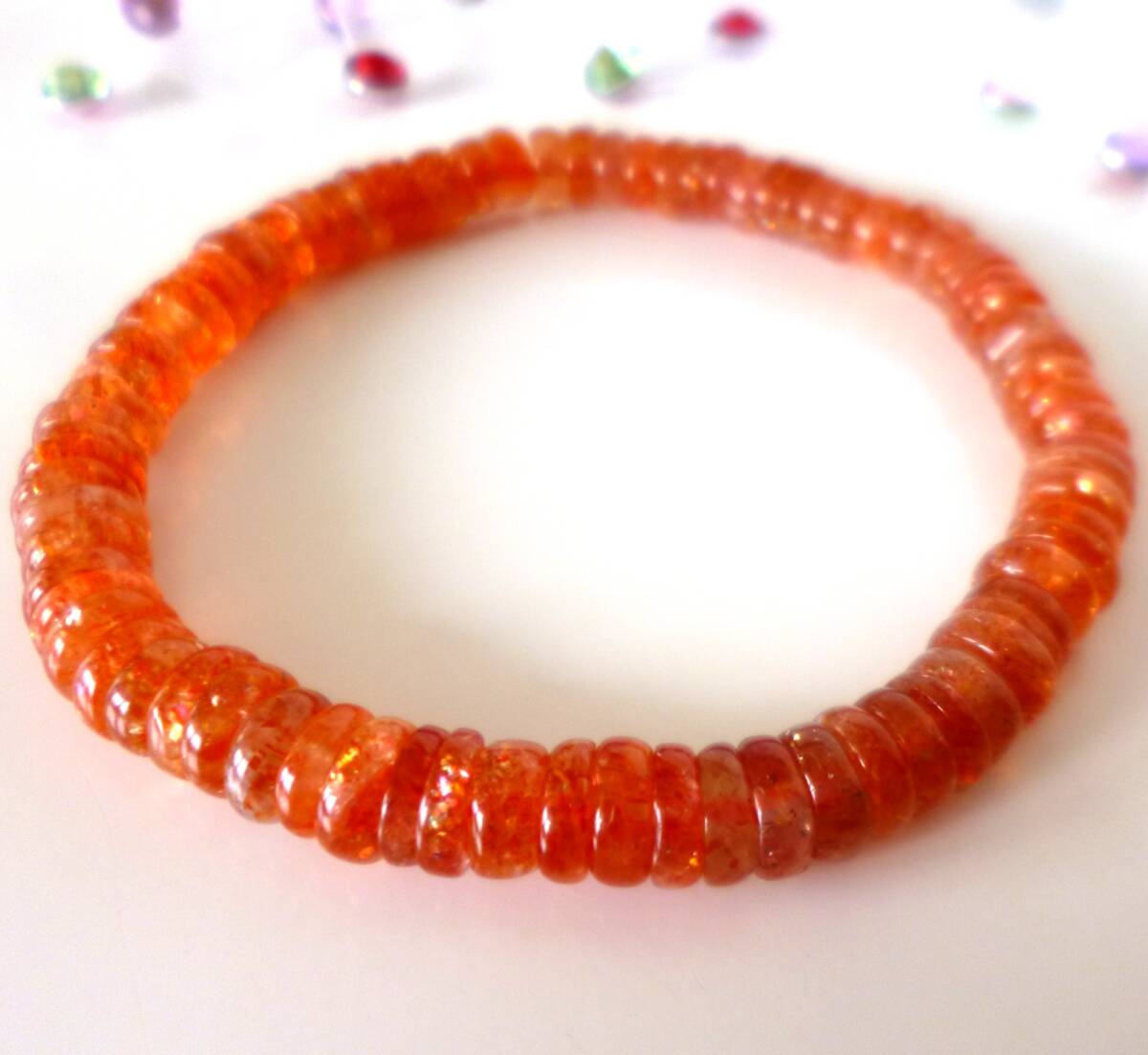 生命力エネルギー☆   ポジティブストーン☆   ☆太陽の石☆   ☆勝利の石☆   ☆南インド産☆   ☆サンストーン☆   ☆6.5×2~3mm☆  ☆16cm☆   ☆6月22日の誕生日石