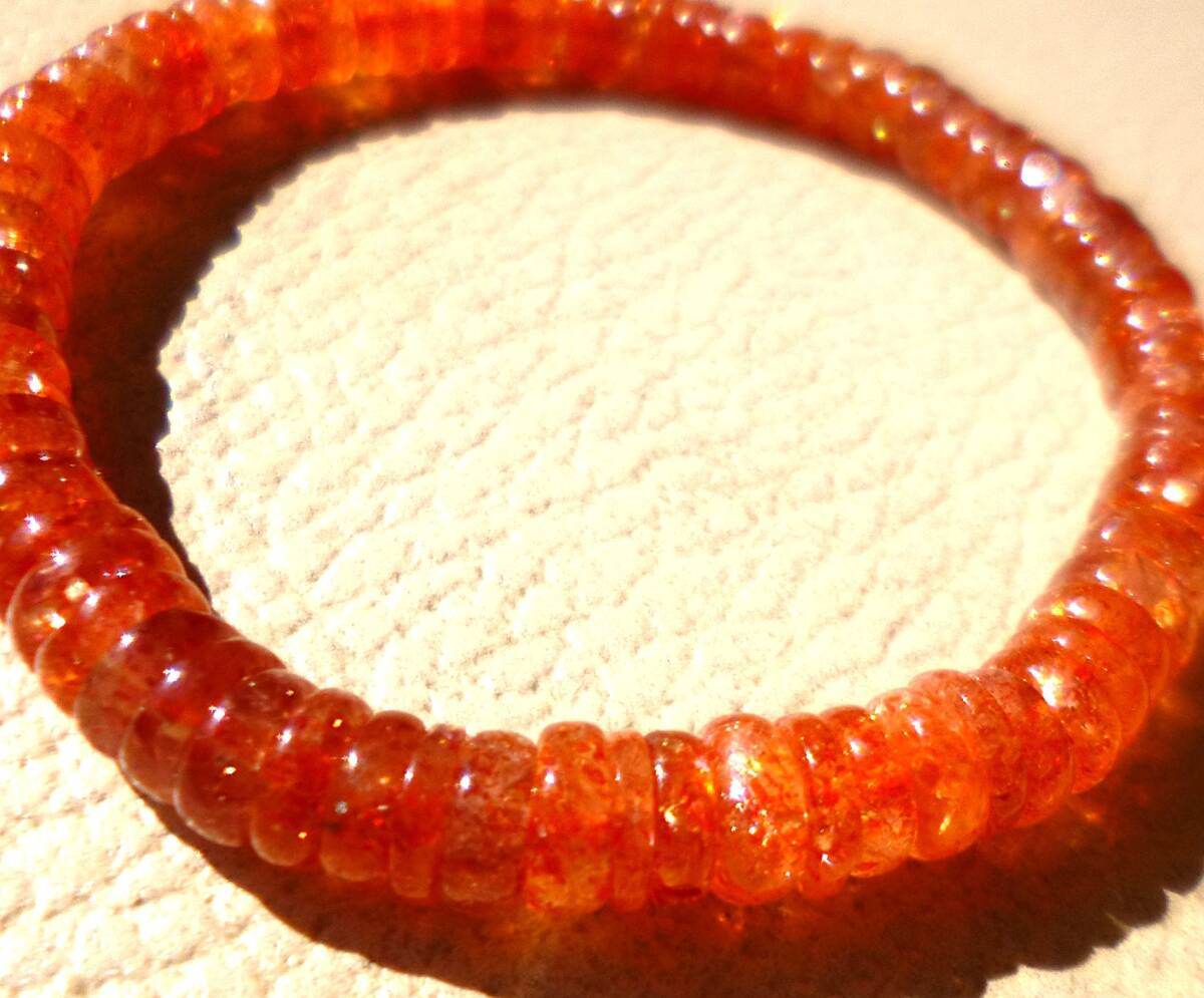 ☆生命エネルギー☆ポジティブストーン☆太陽の石☆勝利の石☆高品質AAA☆南インド産☆サンストーン☆ ☆6.5mm☆ ☆16cm☆