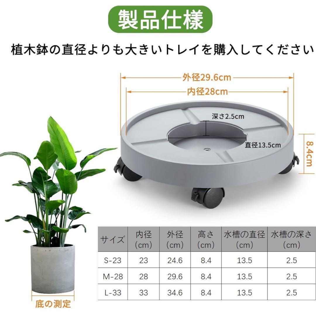 植木鉢台 直径28cm キャスター付き 鉢受台 フラワースタンド ストッパー付き 工具不要 簡単取り付け 貯水設計 最大耐荷重150㎏