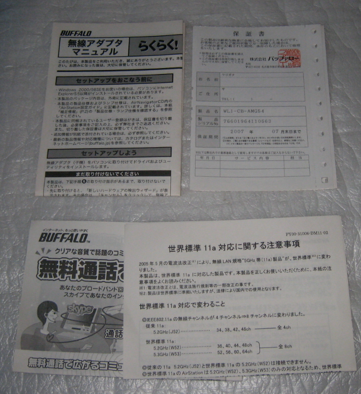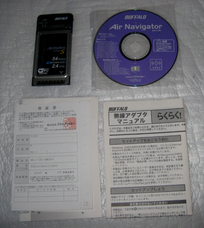 v05 BUFFALO WLI-CB-G54S  無線LANカード ドライバCD/マニュアル付
