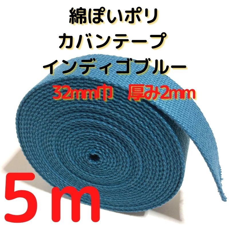 カバンテープ32mmインディゴブルー5M綿ぽいアクリルテープ風【KT32IB5】