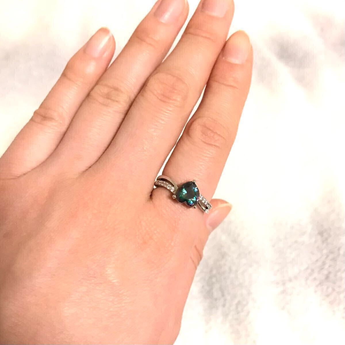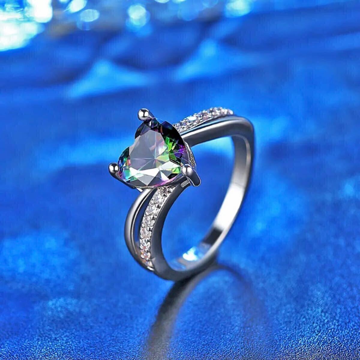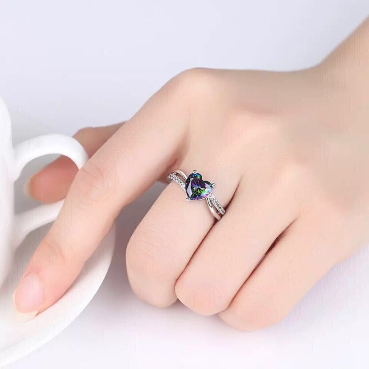 中央にあるハートのAAACZミスティックトパーズ と、両サイドのCZダイヤの輝きが華やかなリングです。シンプルながら可愛いらしいデザインで、どんなファッションにも良く合うお品です。