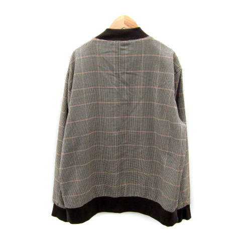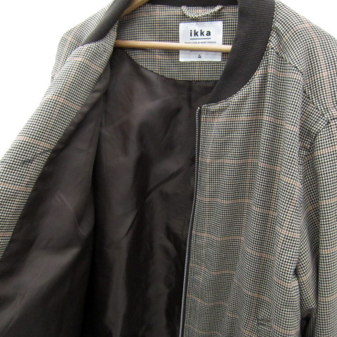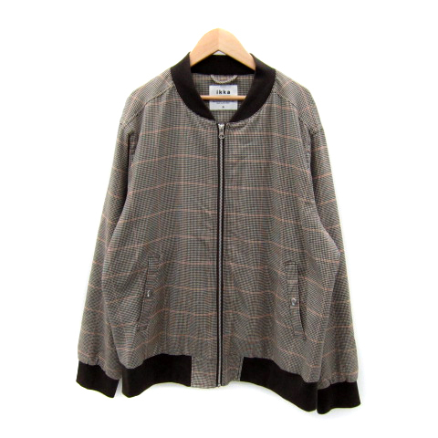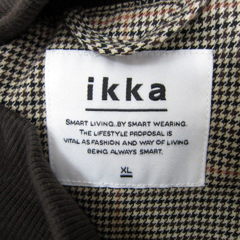 イッカ ikka ブルゾンジャケット ミドル丈 チェック柄 千鳥格子柄 ジップアップ XL ブラウン /SY6 メンズ
