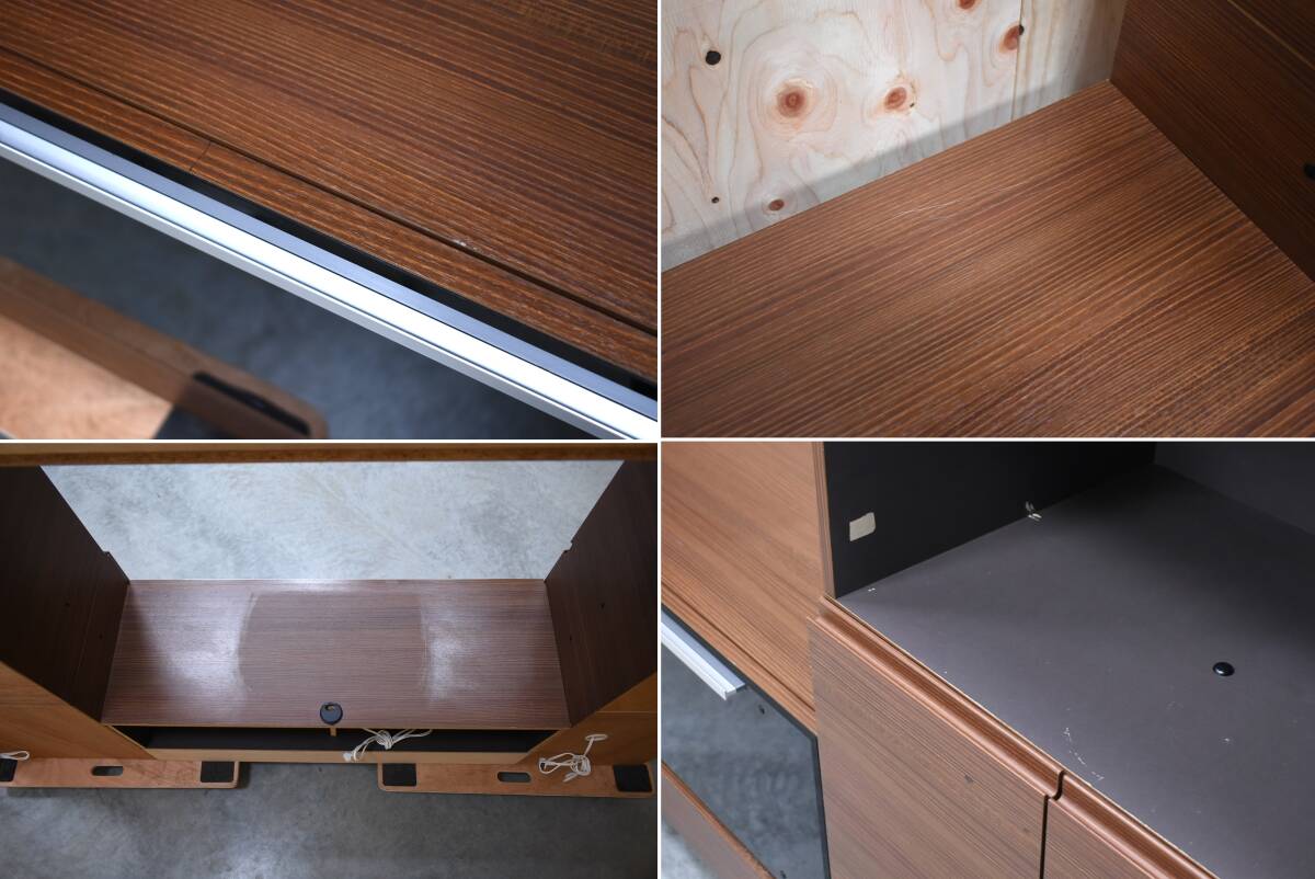 この度は、ご覧いただきありがとうございます。 zyt1911ジ『仙台 引取限定』Pamouna/パモウナ 大型TVボード 幅220cm 高さ約230cm ブラウン テレビボード/壁面収納/リビングボード 70130-16 の投稿です。 --------------------------------------------- 【お品物の詳細】 ブランド:Pamouna/パモウナ 商品名:大型TVボード 幅220cm 高さ約230cm ブラウン サイズ: ※すべて素人採寸 全体:幅 220cm(突起除く) 奥行 44cm(突起除く) 高さ 229cm テレビを置く部分の空間:幅 120cm 奥行 42cm 高さ 88cm 分割時のサイズ 左側-上段:幅 40cm 奥行 44cm 高さ 57cm 左側-中段:幅 40cm 奥行 44cm 高さ 113.5cm 左側-下段:幅 40cm 奥行 44cm 高さ 60cm(扉が上に突き出します) 中央-上段:幅 120cm 奥行 44cm 高さ 57cm 中央-中段:幅 120cm 奥行 44cm 高さ 16.5cm 中央-下段:幅 120cm 奥行 44cm 高さ 45cm 右側-上段:幅 60cm 奥行 44cm 高さ 57cm 右側-中段:幅 60cm 奥行 44cm 高さ 113.5cm 右側-下段:幅 60cm 奥行 44cm 高さ 60cm(扉が上に突き出します) 総重量:不明 付属:本体のみ ※画像のものがすべてです。撮影に使用した平台車は出品物に含みません。 ※製品詳細に関しましては各サイトにてご確認ください。 ※商品写真はテント倉庫内で撮影しております。テント幕を透過してくる太陽光の影響を受けており、写真と実物とで色合いの異なる場合がございます。予めご了承ください。 --------------------------------------------- 【お品物の外観状態】 外観状態ランク:B...一般的な使用感があり、細かな傷や汚れがあるお品物 ****************************************** ▼注意事項御座います、必ずお読みください▼ ****************************************** こちらのお品物は当方がお譲り頂いたお品物となります。 前所有者の方の購入時期や使用環境、保管方法等は不明なお品物となります。 外観状態と致しまして、一見して大きく目立った傷や汚れのお見受けできない中古のお品物かと思われます。 尚、上置き棚の底面に分解や移動、保管の際に出来たと思われる擦れ傷がございます。 また、右側のオープンスペースには擦れ傷による色剥げ/化粧剥げがございます。 ユーズド品となりますので、多少の傷や汚れなどはございますが、当方主観では全体的には中古美品のお品物と判断致しております。 当方でも簡易的な清掃は致しましたが、細部の清掃やメンテナンス等につきましては落札者様にてお願い致します。 当方家具などの専門ではない為、見落としや写真に写しきれていない箇所等のある場合がございます。 照明部分はON/OFF出来ること、電源タップ部分に関しましては、当方所有の照明器具にてAC100Vの通電確認を行っております。 ご不明な点がございましたら質問にてお問い合わせください。尚、専門的な質問に関しましてはお答え致しかねます。 現状のお品物として出品させていただきますので、画像で判断できる方、ご理解ご了承いただける方の入札をお願い致します。 ★状態ランク★ N...新品・未使用・未開封品のお品物 S...数回使用した程度の美品のお品物 A... 目立った傷・汚れが余り感じられない程度の美品のお品物 B...一般的な使用感があり、細かな傷や汚れがあるお品物 C... 傷・汚れが目立つ状態のお品物 J... 故障・破損・破け等がある商品(ジャンク品) ※長期の保管や倉庫内での移動等により、コンディションに多少変化のある場合がございます。大変恐れ入りますが、何卒ご理解賜りますようお願い申し上げます。 ******************************************************************* 【発送方法・送料等】 ※当方では発送手配できない大型のお品物の為、引き取り限定でのご対応とさせていただきます。(引き取りに来られる方はご本人様でなくても構いません。)尚、当方では発送手続き致しません。予めご了承ください。 『 仙台市内での直接のお渡し 』 当方倉庫(仙台市宮城野区中野 ※仙台港ICより車で2分)での直接のお渡し。 事前に取引ナビにて日時のご予約を頂いた上で、当方指定の住所にてお渡しが可能です。 (※引き渡しの準備は決済後より順次行わせていただきます。当方住所から離れた無人の倉庫にて保管している為、人員派遣の都合上、お品物の準備に日数を頂戴する場合がございます。) ■お渡しが可能な日時■ 曜日 : 毎週火曜日は定休日となりますので、火曜日以外でお渡し可能 お時間: 10時~17時 までのお時間でお渡しのご対応は可能です。 ※引き渡しの日時は取引ナビにて事前にご予約をお願い致します。 ご希望はある程度お伺い出来ますが、恐れ入りますが当方の予定に合う日程でのお渡しとなりますので予めご了承下さい。 ご希望の日時は第1~第3希望程度お知らせ頂けますと調整が行えるかと思いますので、ご検討の程お願い致します。 【ご注意】 お車までの積み込みはある程度お手伝いは可能ですが、当方での手伝いは1人のみの手伝いの場合が多いので、人手が必要な場合はご注意ください。 ※製品サイズをご確認の上、トラックなどの積載可能なお車でお越しください。荷台に余裕のない場合、トラブル防止のため当方では積み