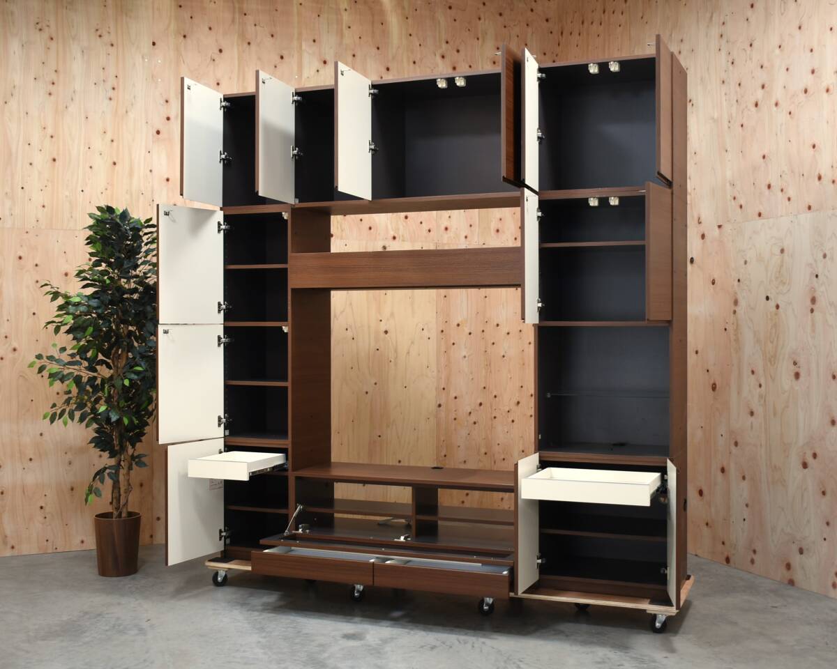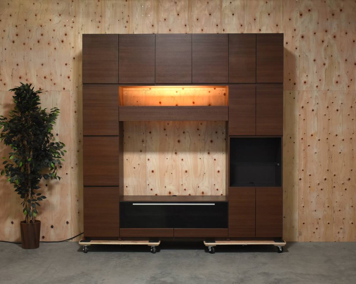 zyt1911ジ『仙台 引取限定』Pamouna/パモウナ 大型TVボード 幅220cm 高さ約230cm ブラウン テレビボード/壁面収納/リビングボード 70130-16 | |||
