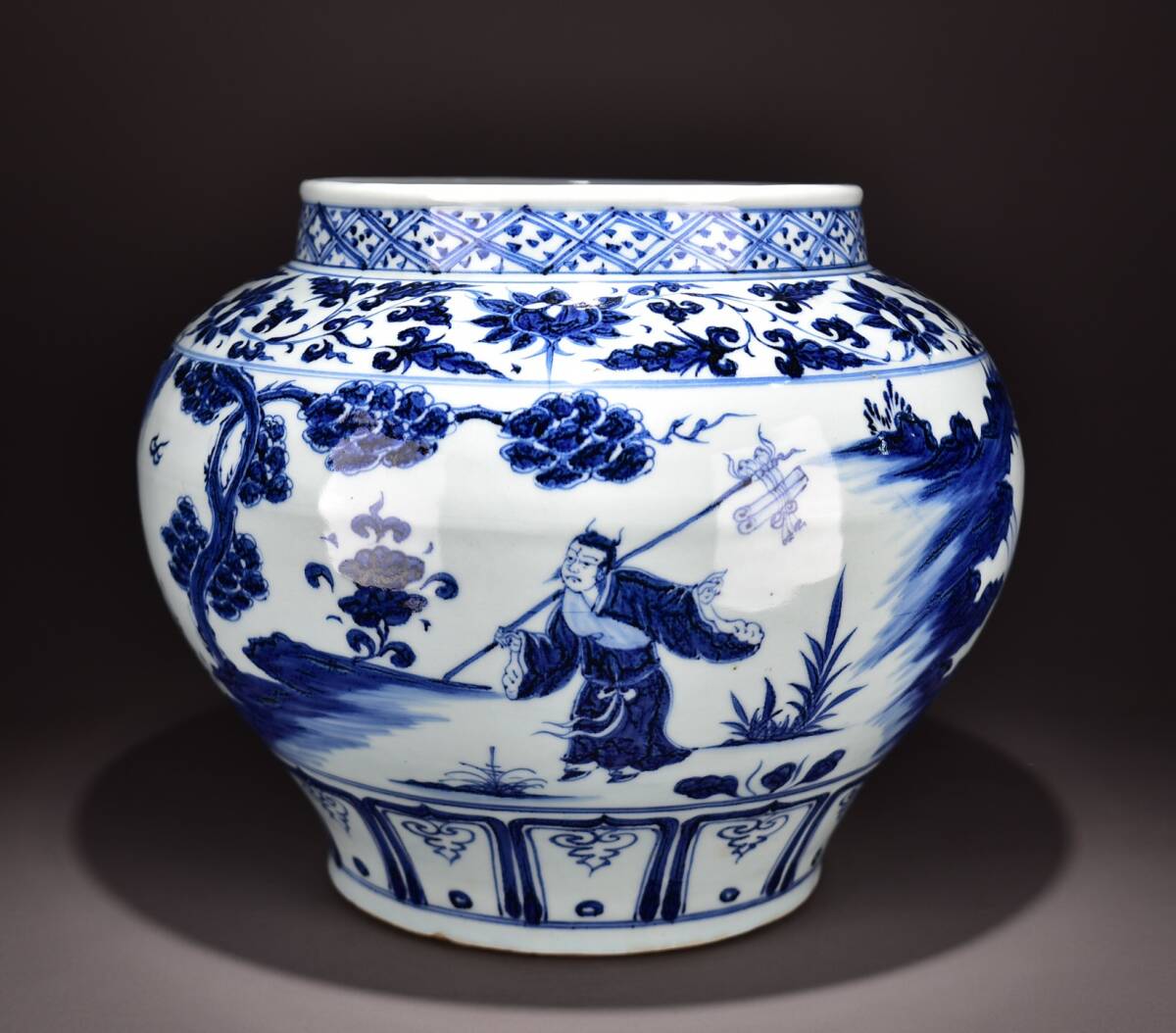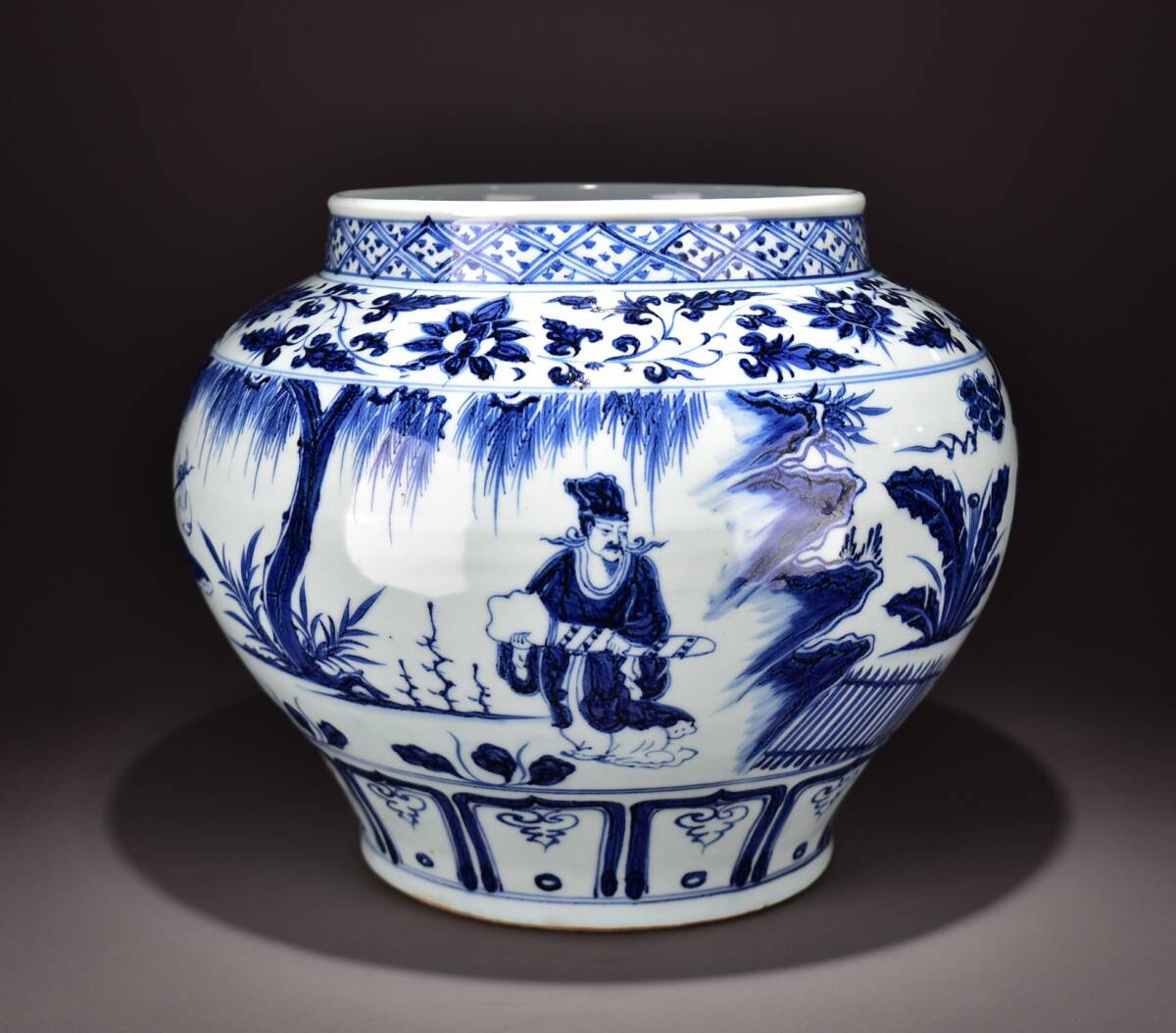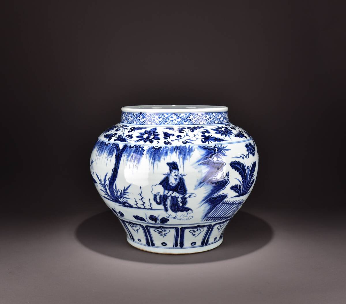 【仁】『元・古陶瓷品・青花・訪友紋罐』極細工 古賞物 中国古玩 古美術 古美味
