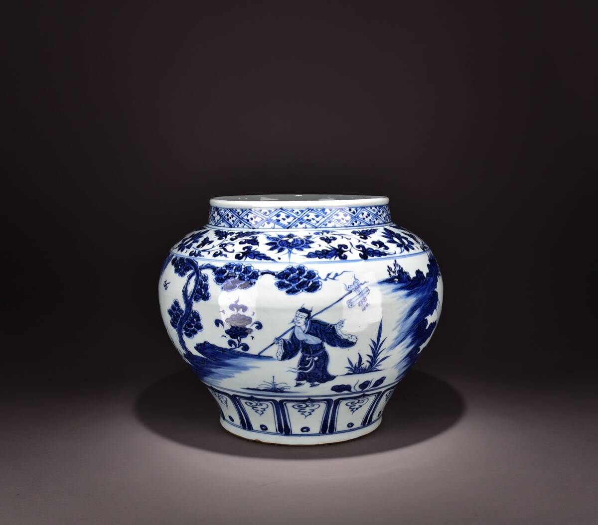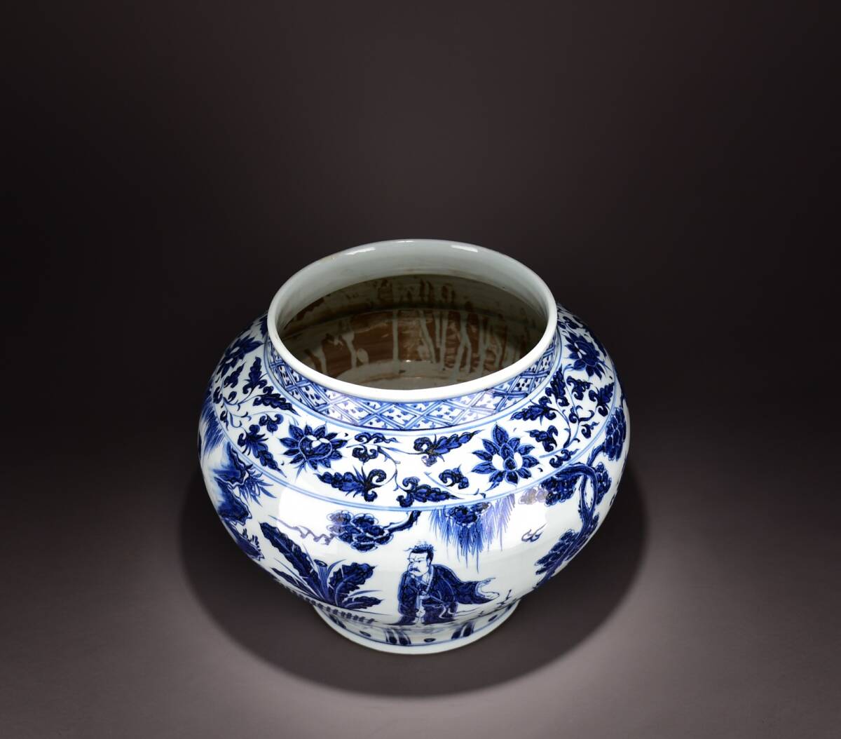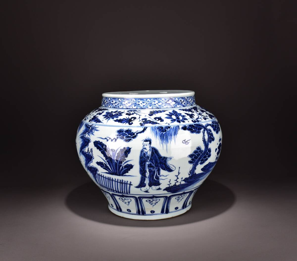 【仁】『元・古陶瓷品・青花・訪友紋罐』極細工 古賞物 中国古玩 古美術 古美味
