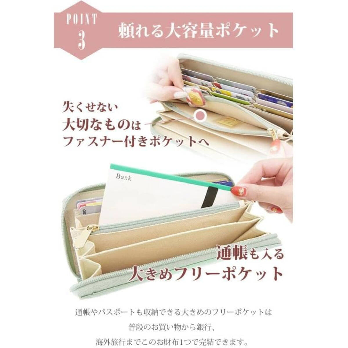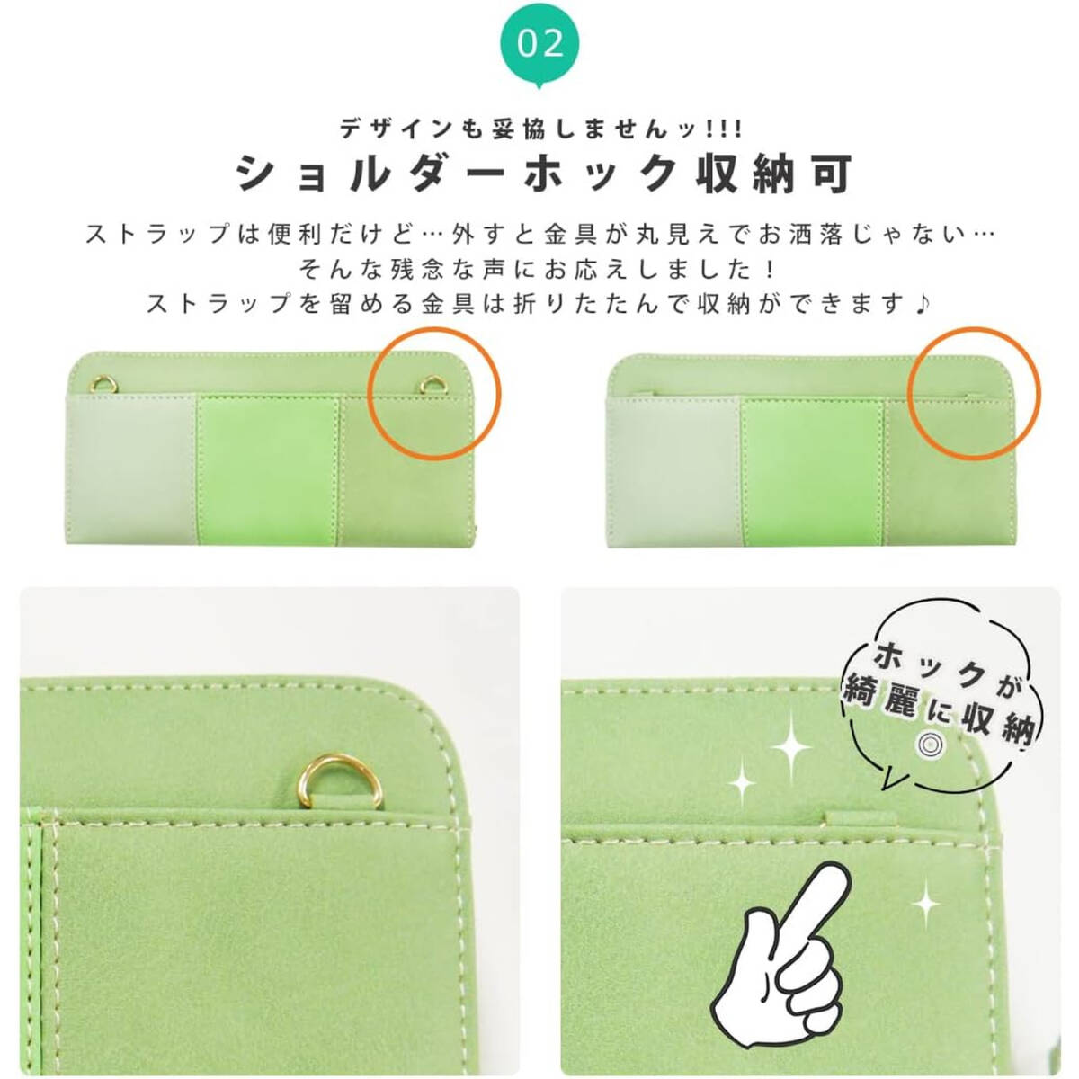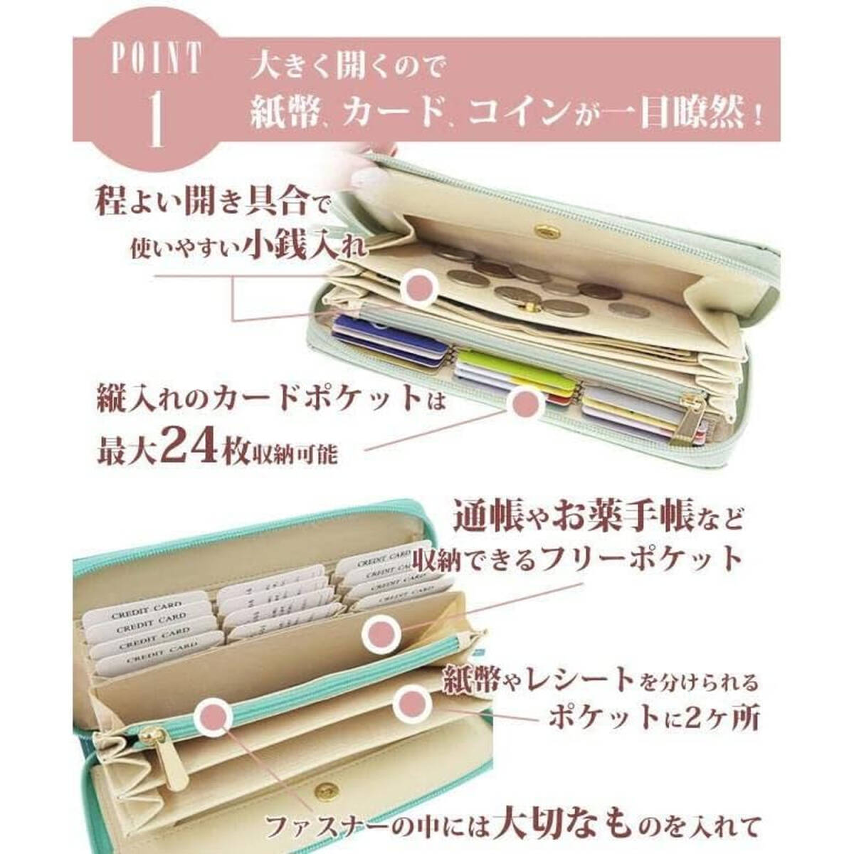 長財布 ライトグリーン ショルダー付き フェイクレザー ラウンドファスナー ポーチウォレット 背面ポケット バイカラー 金運 運気アップ